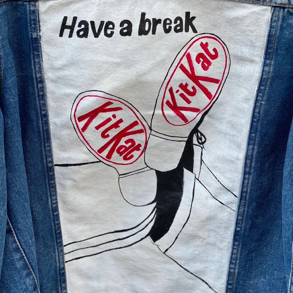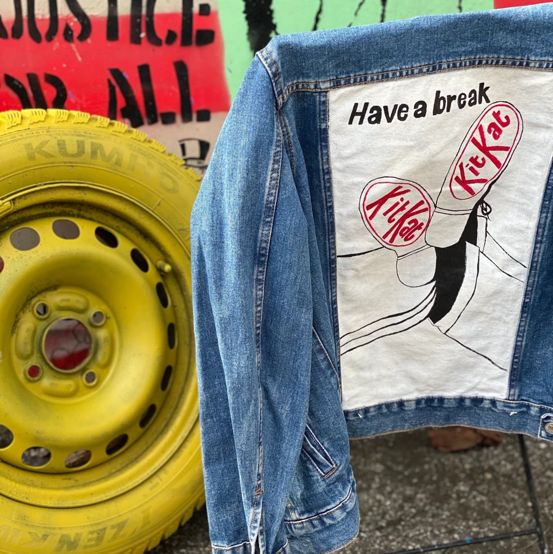 Vintage denim jacka med målad KitKat logga från 70-talet. Testar intresset här på Plick.