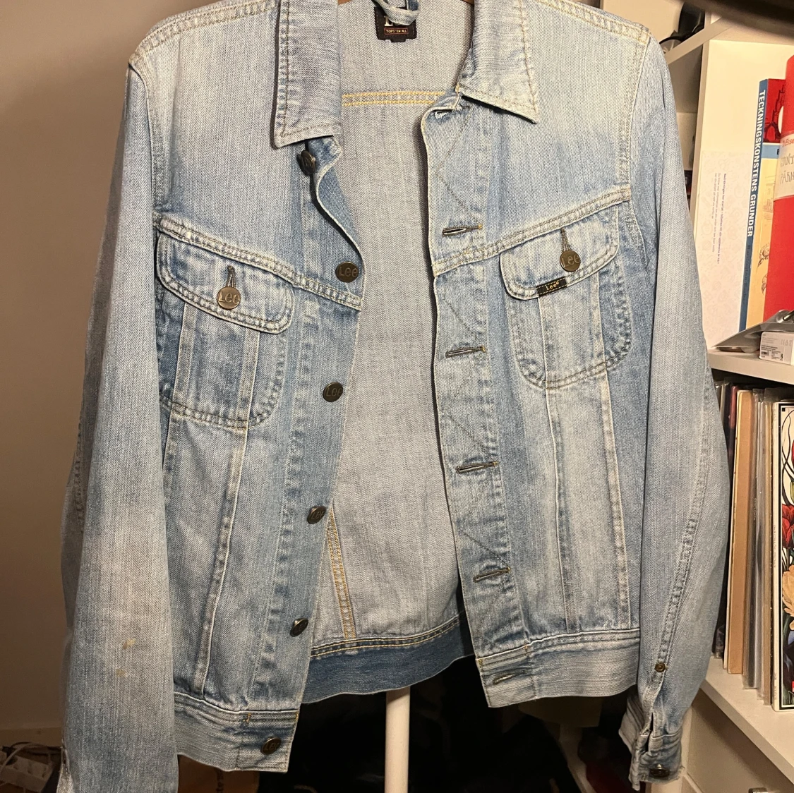 Lee rider jacka i storlek medium. Tvättad blå färg, små slitningar vid ärmarna. Bra skick i övrigt. Nypris: 799 kr Mitt pris: 199 kr