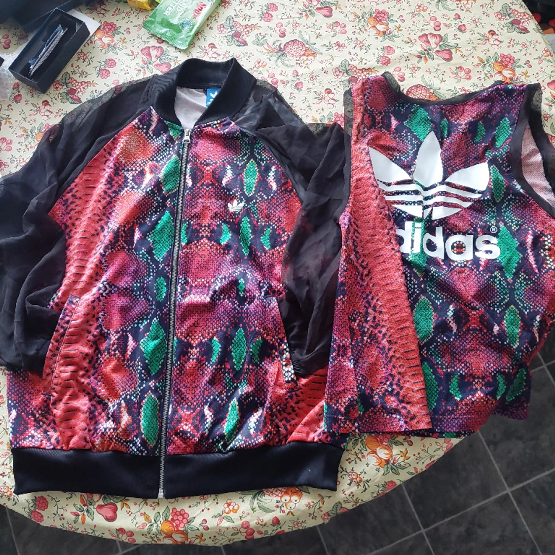 ADIDAS SET: OLIKA STORLEKAR ! JACKAN; 38/40 med svarta tunna nät armar och LINNET storlek; 32/34 xxs,xs