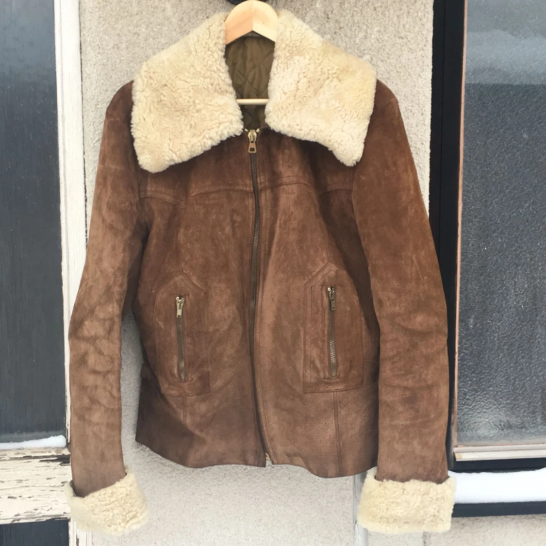 60/70-tals mockajacka med fårullskrage och moddar. Superbra skick