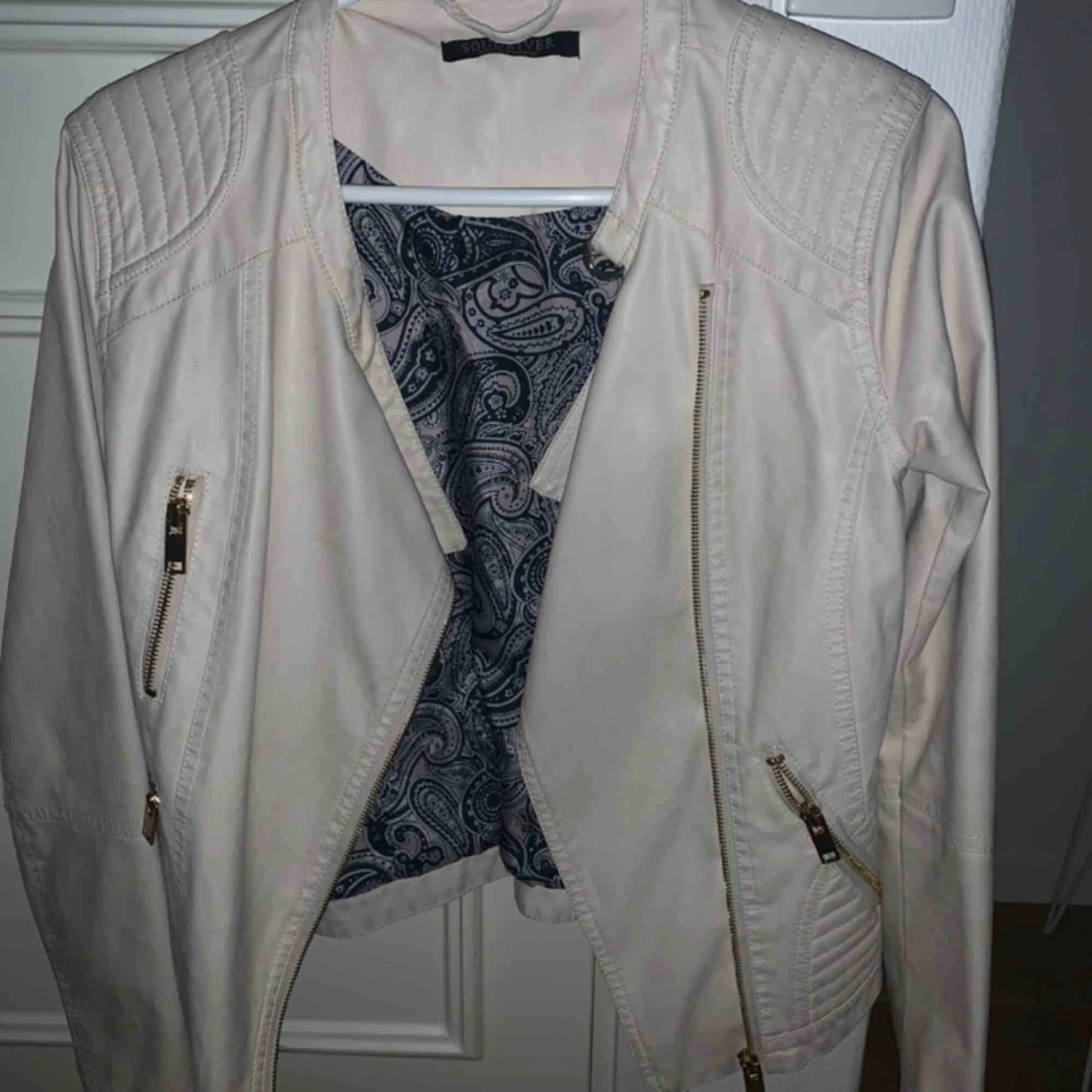 Mycket fin skinnjacka i färgen ljusrosa/ljusbeige. Använd ganska mycket därav priset. Lite smutsig på armarna men inget som syns jätte tydligt
