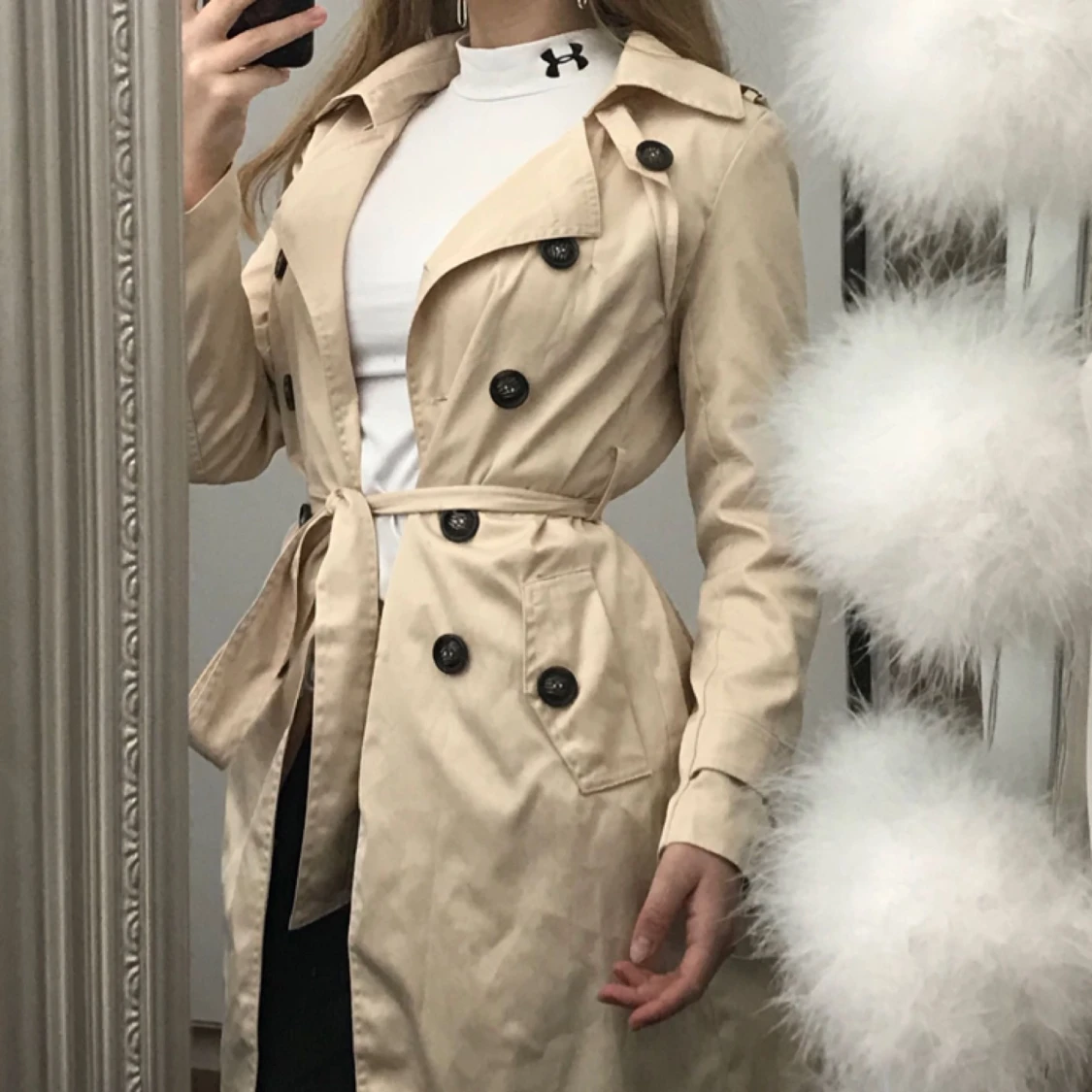Har fått denna trenchcoat av en släkting som beställde från nätet men aldrig passade i den när den kom fram. Jag har inte heller använt den och den är alltså som ny. Det finns inget märke i så jag vet inte var den är köpt. Ca 77cm lång.