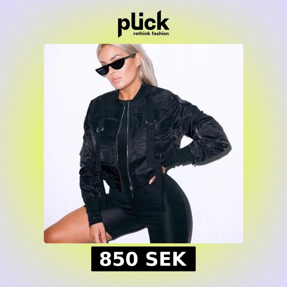 Säljer en svart bomberjacka från kollektionen Fanny lyckman gjorde för missguided för några år sedan, går inte få tag på längre och sålde slut direkt, Jackan är croppad och har långa ärmar med ribbade muddar. Perfekt för dig som vill ha en edgy och trendig look.
