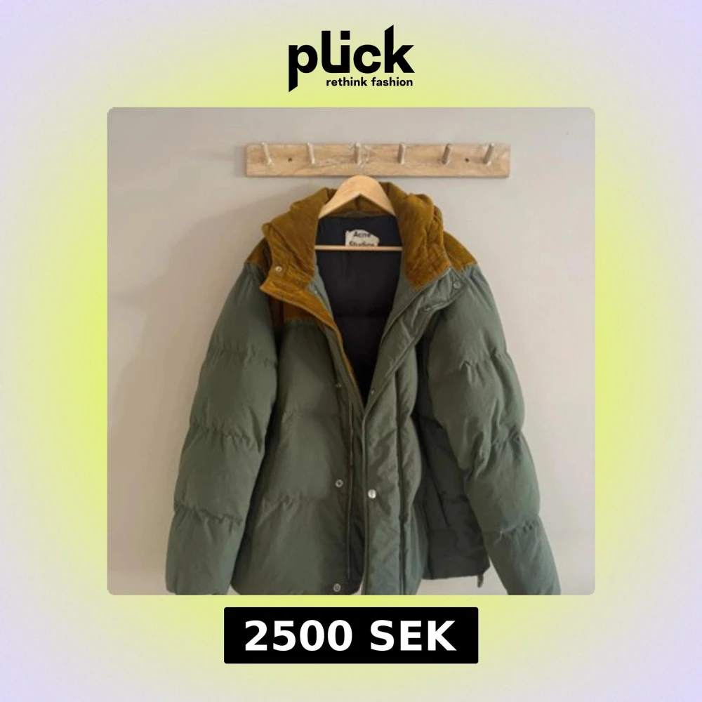 Jättefin jacka grön jacka från acne studios. Dragkedjan är trasig och går att fixa för några hundra på ett skrädderi, annars har jackan även rejäla knappar hela vägen som går att använda. Nypris är runt 10 000 kr, mitt pris endast är 2500!