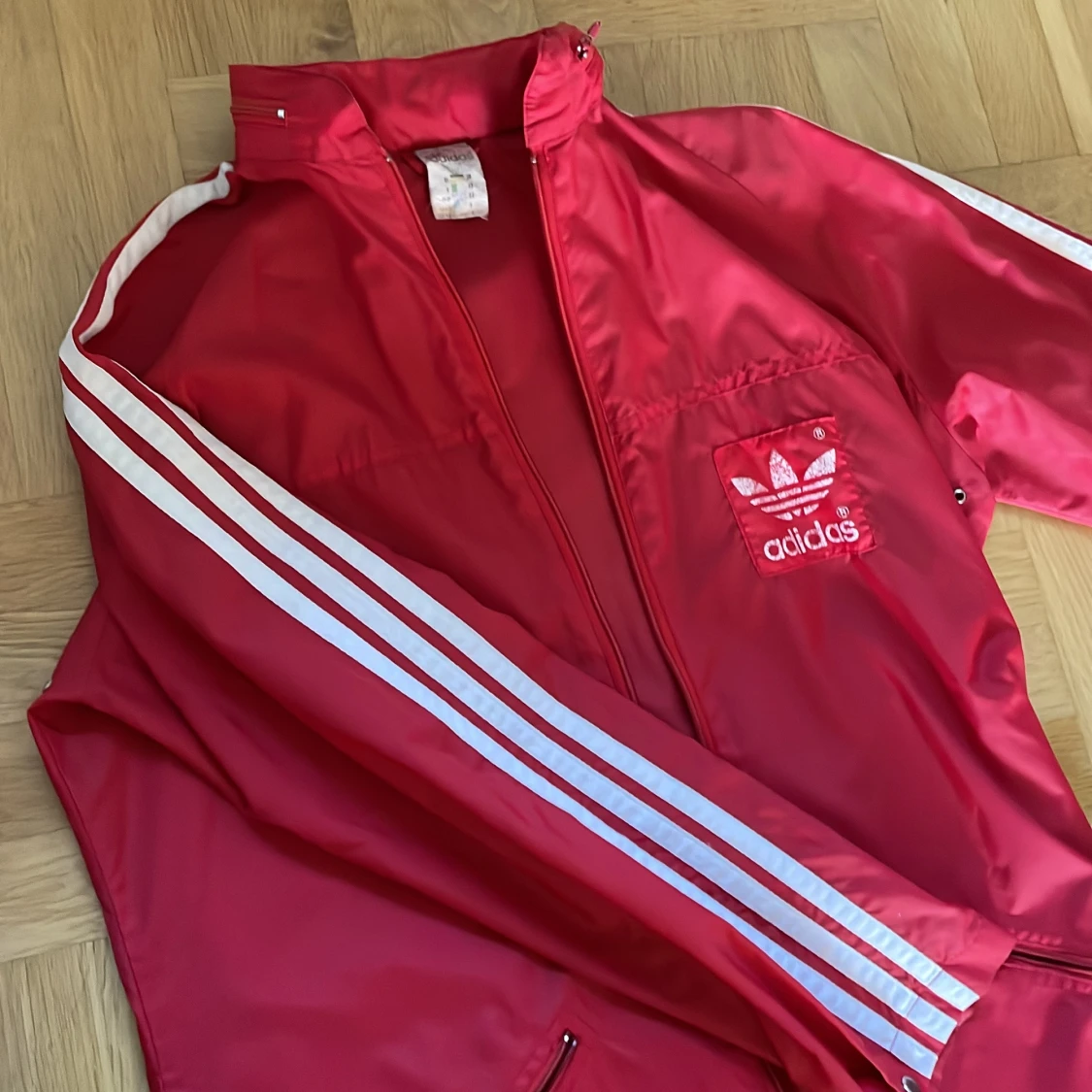 Röd adidas jacka som jag aldrig använt och är i storlek 38.