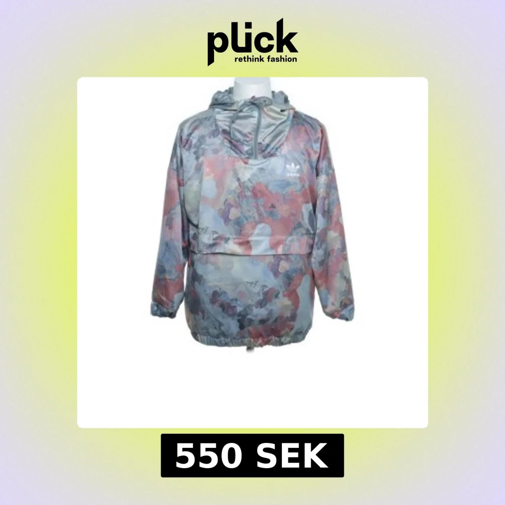 Säljer en cool vindjacka från Adidas i ett färgglatt camouflage-mönster. Jackan har en justerbar huva och långa ärmar. Perfekt för att sticka ut i mängden med sin unika design. Tillverkad i polyester för en lätt och bekväm känsla.