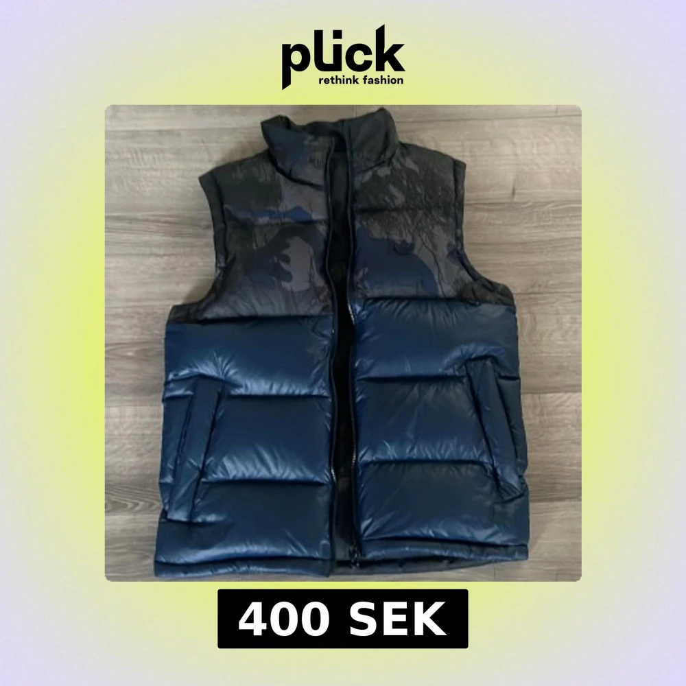 Snygg blå dunväst från Adidas med coolt camouflagemönster upptill och diskret Adidas-logga på bröstet. Västen har hög krage, två fickor och dragkedja framtill. Fylld med 80/20 dunblandning för extra värme. Perfekt för kalla dagar när du vill ha streetstyle.