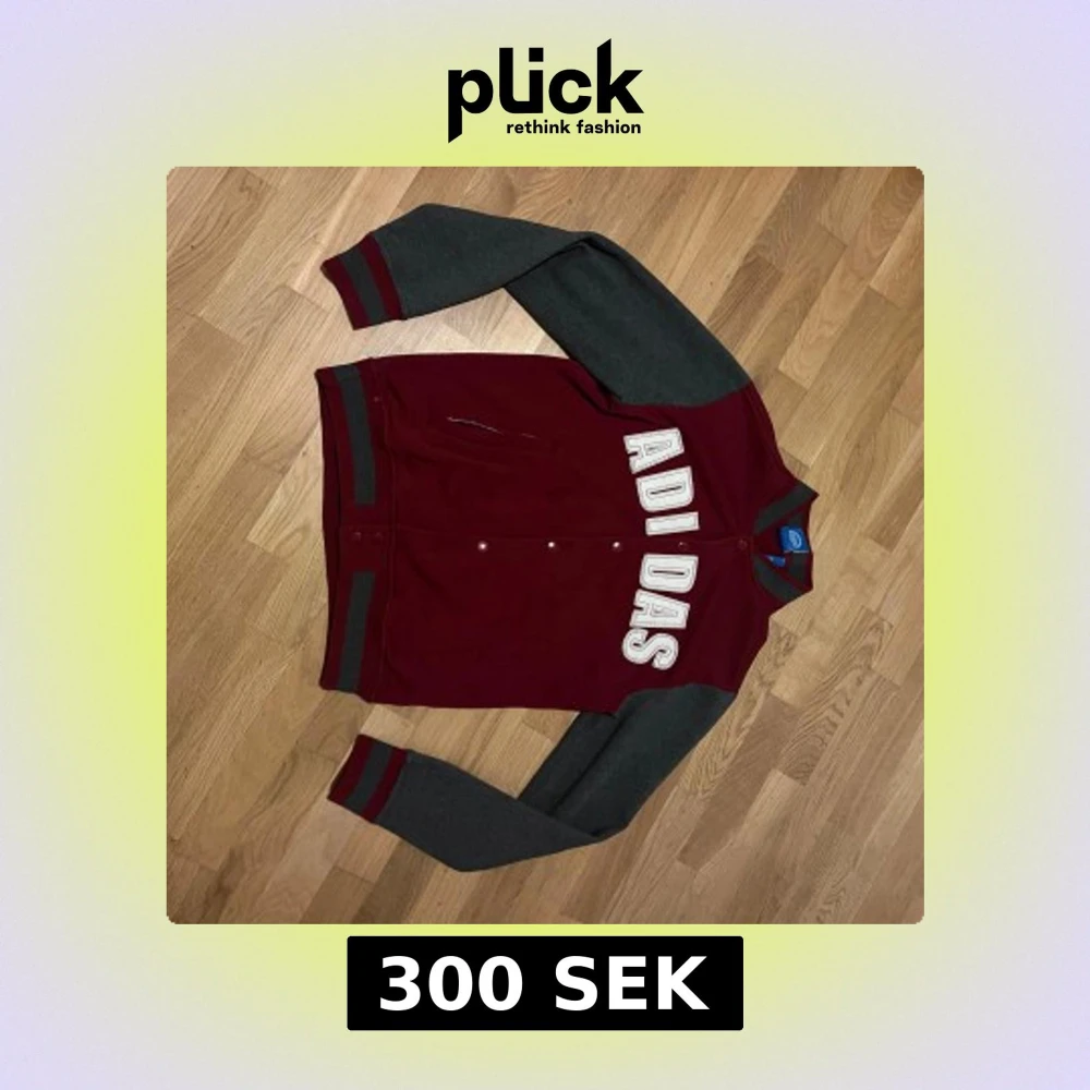 Snygg vinröd bomberjacka från Adidas med grå ärmar och breda ränder vid muddar och krage. Stor vit Adidas-logga på framsidan, knappar och fickor. Perfekt för dig som vill sticka ut med sportig stil.