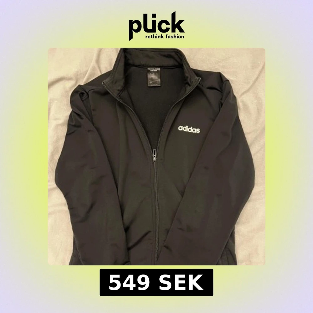 Säljer en svart kofta från Adidas med dragkedja och hög krage. Jackan har en stilren design med Adidas-loggan på bröstet. Perfekt för träning eller som en lätt överdragströja. 🖤