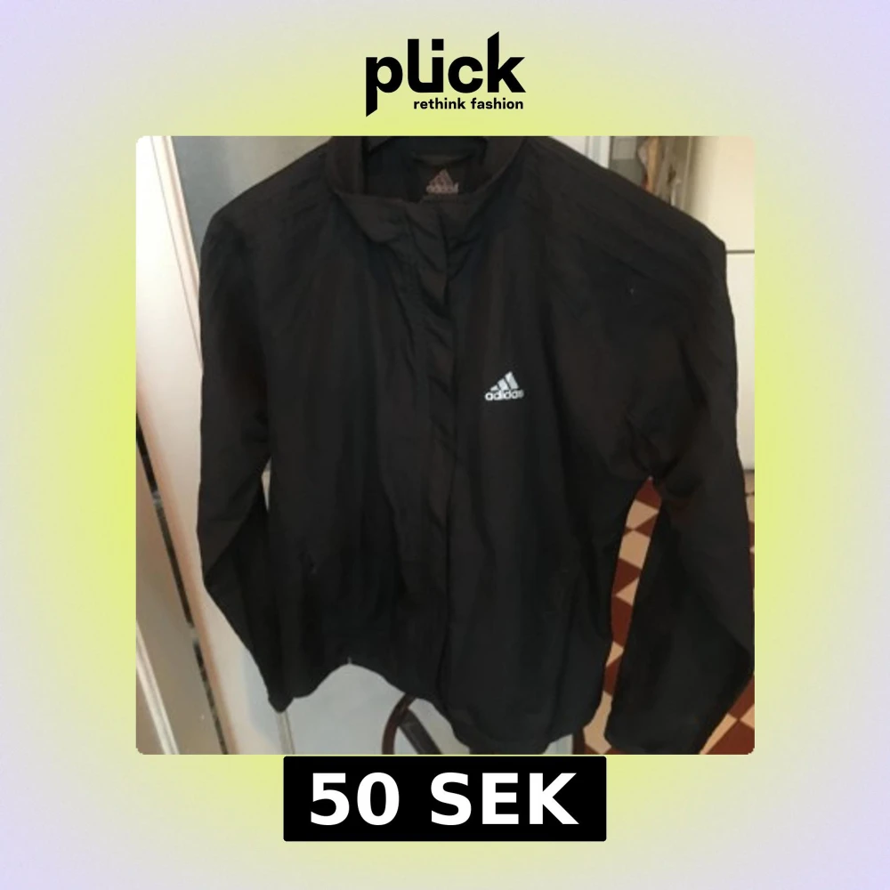 Säljer en svart vindjacka från Adidas med Clima365-teknologi. Jackan har en dragkedja framtill och Adidas-loggan på bröstet. Perfekt för träning eller som en lätt jacka för blåsiga dagar.