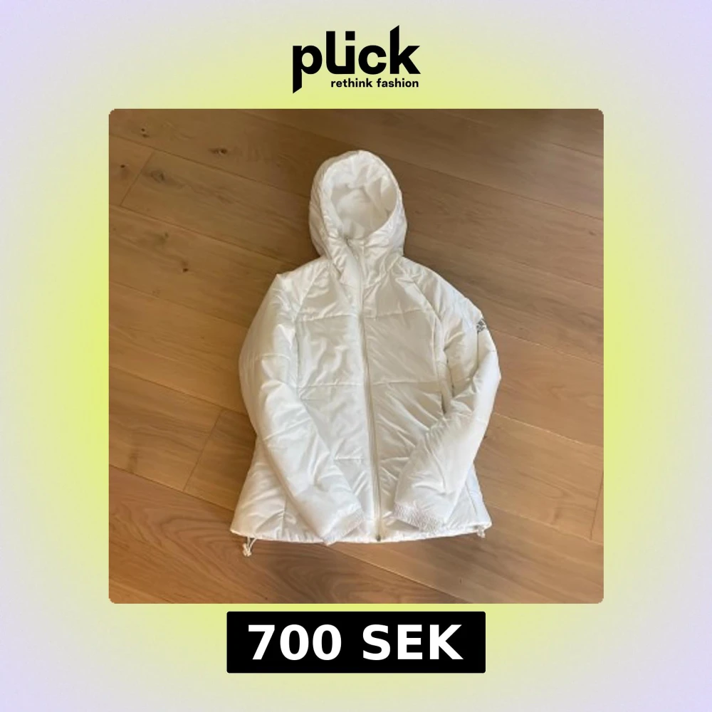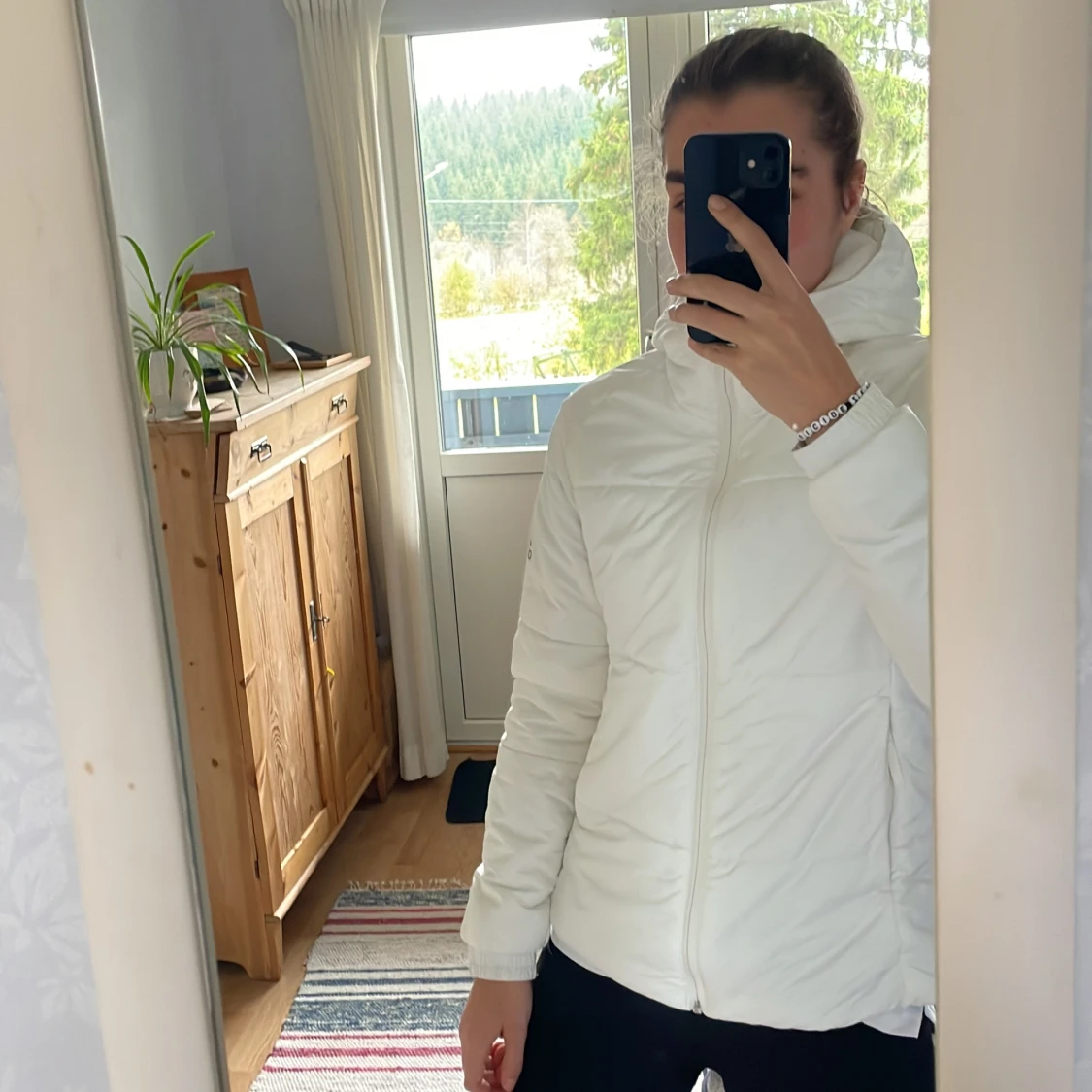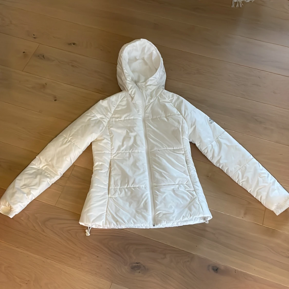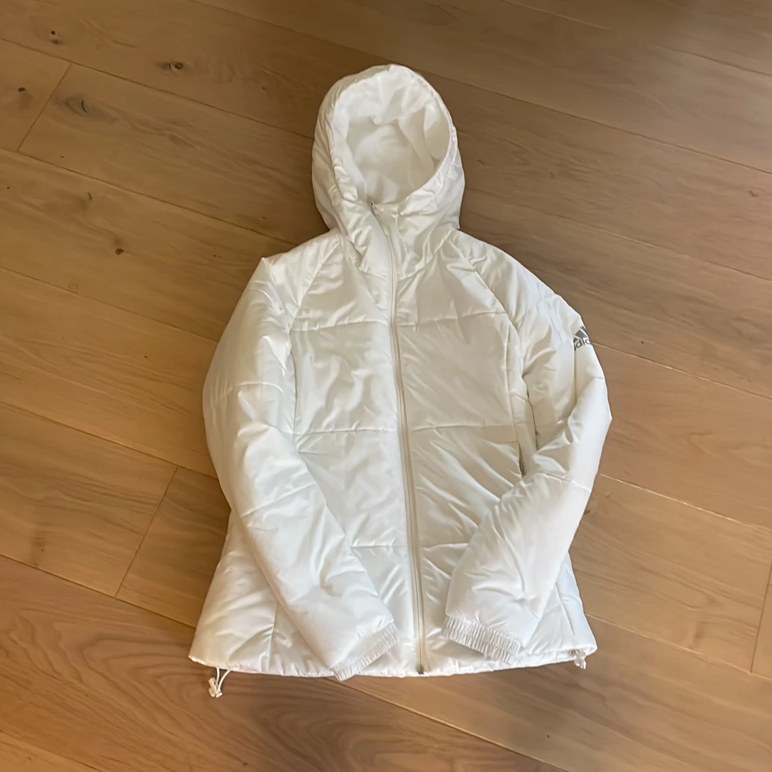 Säljer en vit dunjacka från Adidas med huva och dragkedja framtill. Perfekt för kyliga dagar och enkel att matcha med olika outfits. Inga fläckar!
