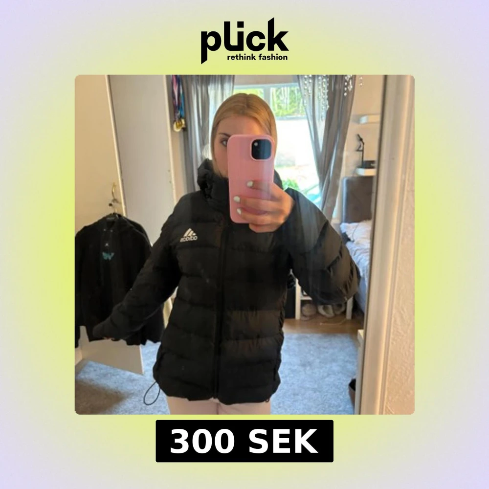 Säljer en svart pufferjacka från Adidas som e perfekt under vintern.