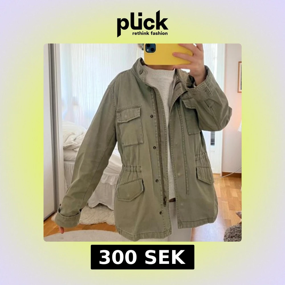 Säljer en olivgrön jacka med dragkedja och knappar. Jackan har flera praktiska fickor och en avslappnad passform. Perfekt nu till våren! Jackan har några små missfärgningar men som man inte tänker på! Gammal från Åhléns, storleken står inte, men skulle säga att den är en s/m.