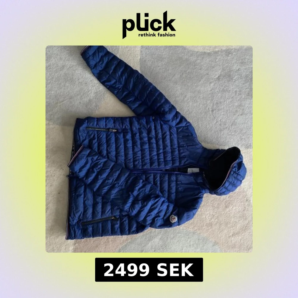 Säljer en snygg blå quiltad jacka från Moncler. Jackan har en dragkedja framtill och två praktiska fickor med dragkedjor. Perfekt för kyligare dagar med sin stilrena design och varma material.