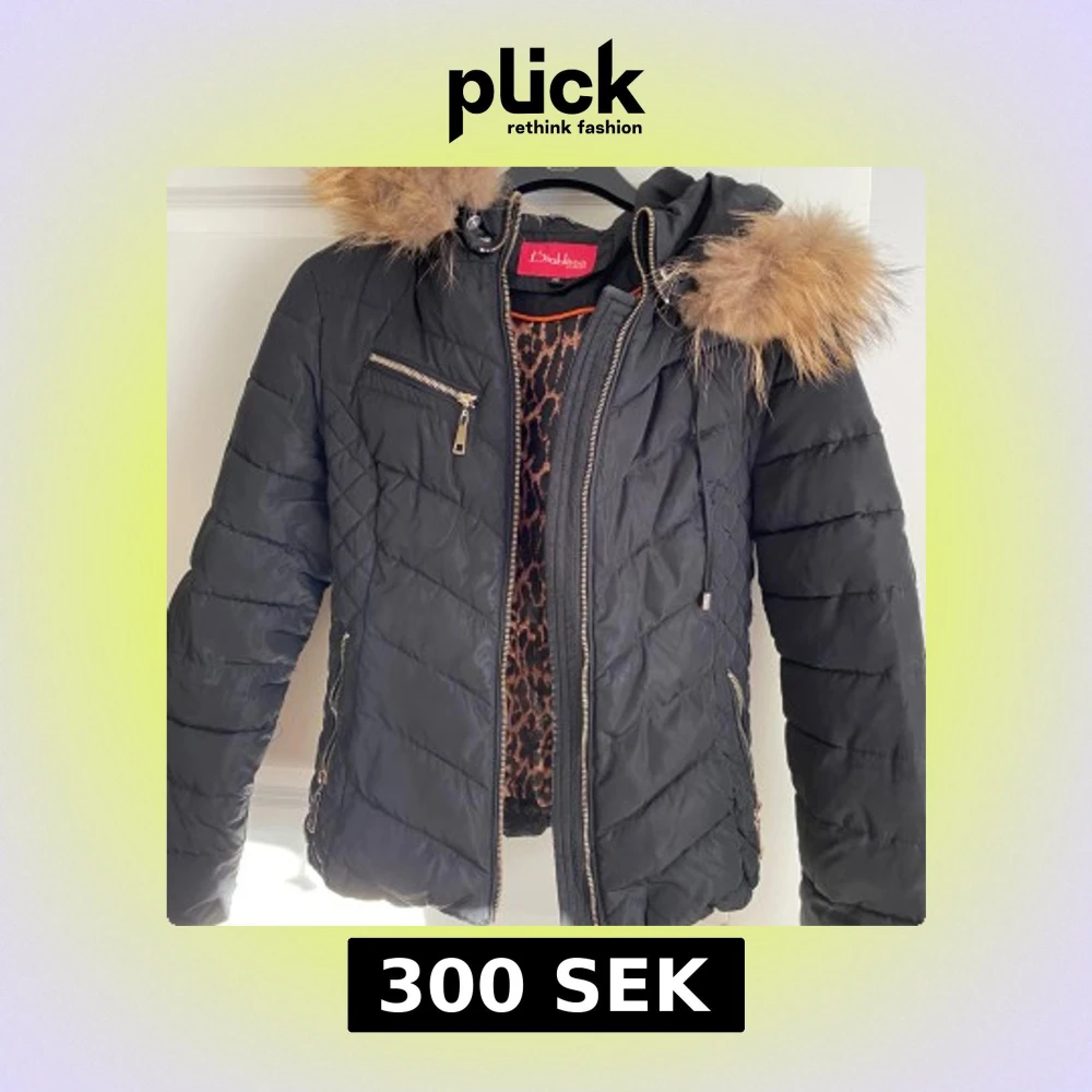 Snygg svart quiltad jacka från Diabless med dragkedja och äkta päls på huvan. Jackan har flera praktiska fickor med dragkedjor och ett leopardmönstrat foder som ger en cool touch. Perfekt för kyligare dagar!