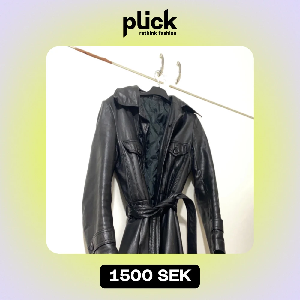 Säljer en svart skinnrock i mycket bra skick. Den har långa ärmar och ett bälte i midjan för en snygg passform. Perfekt för höst och vinter, och ger en cool look till vilken outfit som helst. Rocken har en klassisk stil med knappar framtill. Säljer den för 1500kr äkta skinn passar storlek S o M