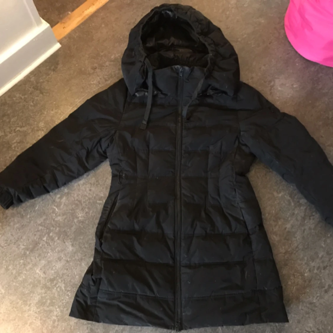 Fin vinterjacka lite längre modell men inte som en kappa. Varm och go. Storlek S men passar M också. Finns centralt
