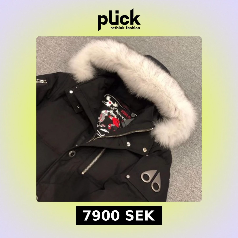 Snygg svart dunjacka från Moose Knuckles med avtagbar huva kantad med päls. Jackan har flera dragkedjor och knappar, samt unika metalliska detaljer på ärmen. Perfekt för kalla dagar med sin quiltade design.