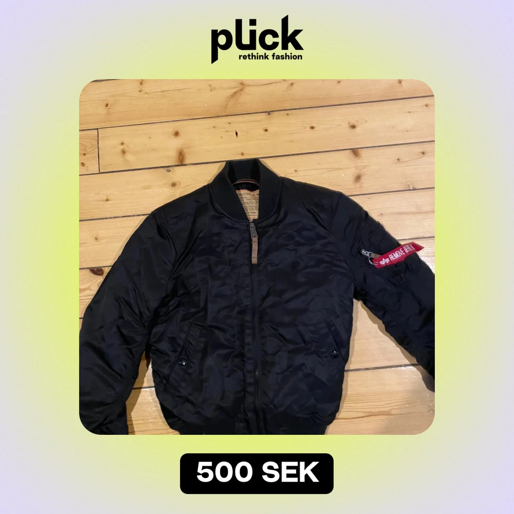 Alpha industriers bomberjacka i storlek Small, jackan är i topp skick och är fodrad.