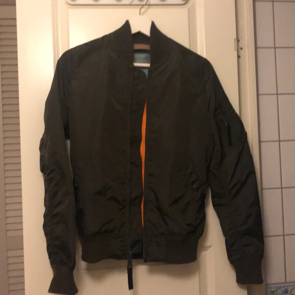 Assnygg bomberjacka från alpha industriers men saknad röd tagg. Köpt för 2000kr säljs för 700kr+frakt. Skick 9/10, militärgrön och passar höst/vår.