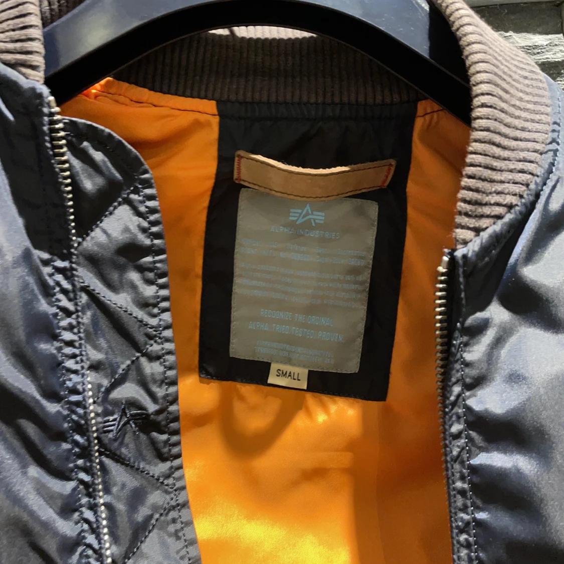 Säljer en riktigt fin vårjacka från Alpha Industries! Str S. Skick 8/10 lite solblekt runt kragen och nedre delen av armarna men inte så farligt. Säljer den pga växt ur den. Hör av er vid intresse! Nypris 1500kr