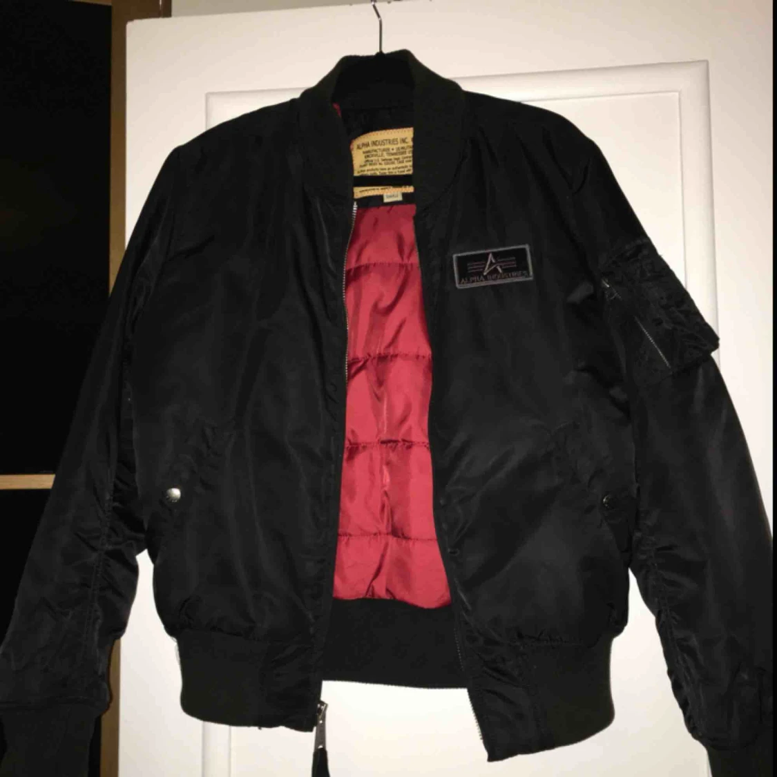 Tjockare Alpha bomber jacka, kan användas på vinter. knappt använd. Ser ut som ny. Rött innertyg. Dock saknas ”röd flärp”. Funkar som M till kvinna och S till man
