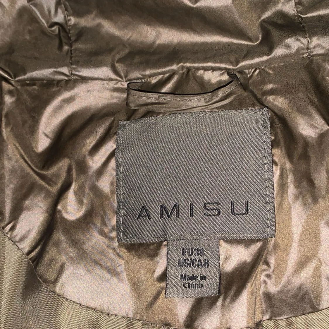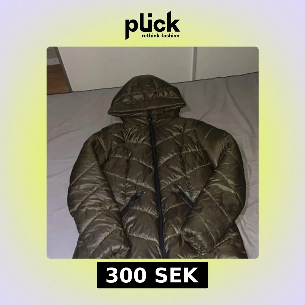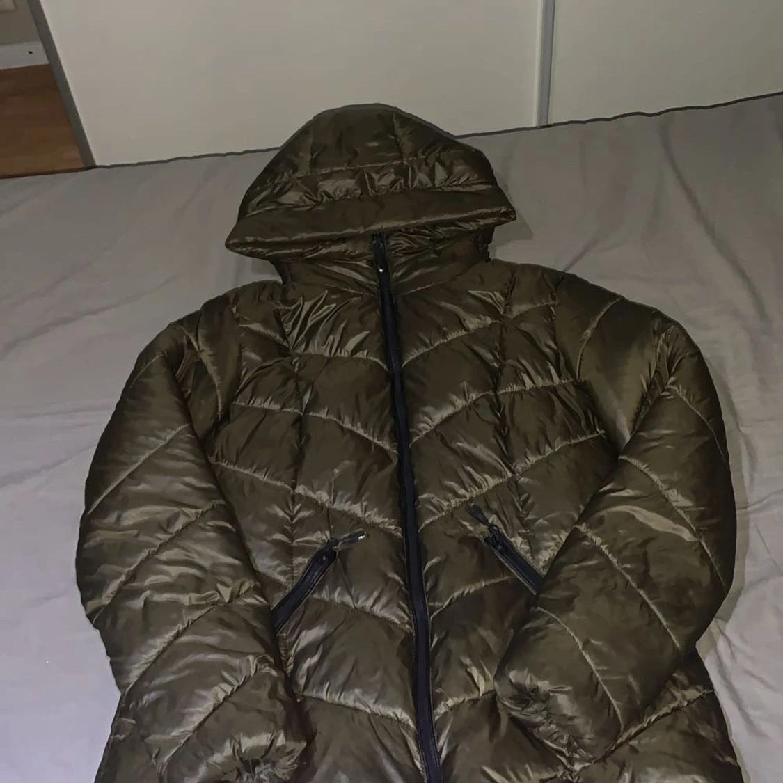 Säljer en olivgrön pufferjacka från Amisu med huva och dragkedja framtill. Jackan har quiltad design och två snedställda fickor med dragkedja. Perfekt för kalla dagar och riktigt snygg till streetwear-stilen.
