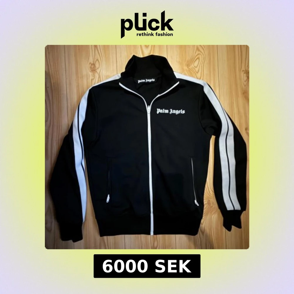 Snygg svart träningsjacka från Palm Angels. Jackan har en hög krage och loggan på bröstet. Nästintill sprillans nya bara byxorna använt ca 2 gånger. Storlek S på koftan och storlek M på byxorna, sitter riktigt fint! Kvitto och lappar har jag dessvärre inte kvar då den var köpt för 1-2 år sedan, äkthets bevis genom QR-kod finns. Nypris på endast koftan ligger på ca 5400kr! 🌸 Priset är prut bart vid snabb affär