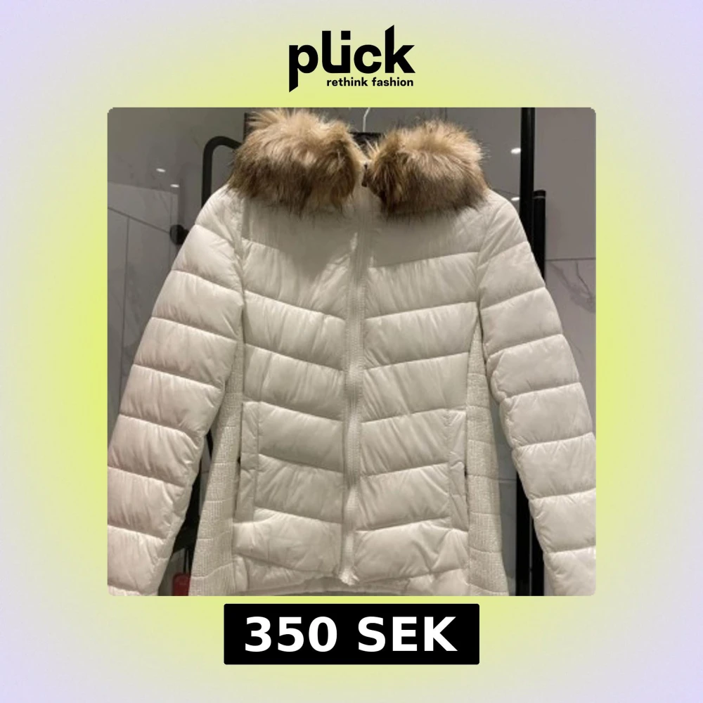 Snygg vit pufferjacka från Etirel med fluffig fuskpäls runt huvan. Jackan har quiltad design, dragkedja framtill och ribbade partier på sidorna. Perfekt för kalla dagar när du vill hålla stilen och värmen.