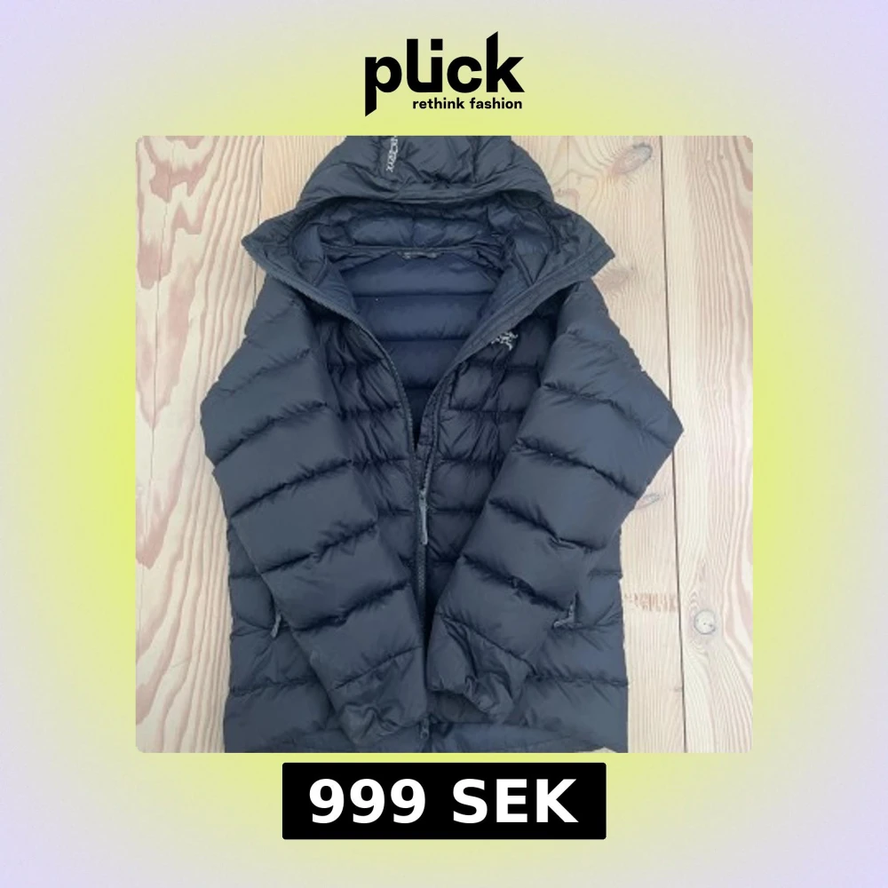 Tjena! Riktigt fet svart Arc’teryx dunjacka. Storlek M. Har ett litet hål vid högra axeln, lagat med en bit svart tejp. Pris kan självklart diskuteras!