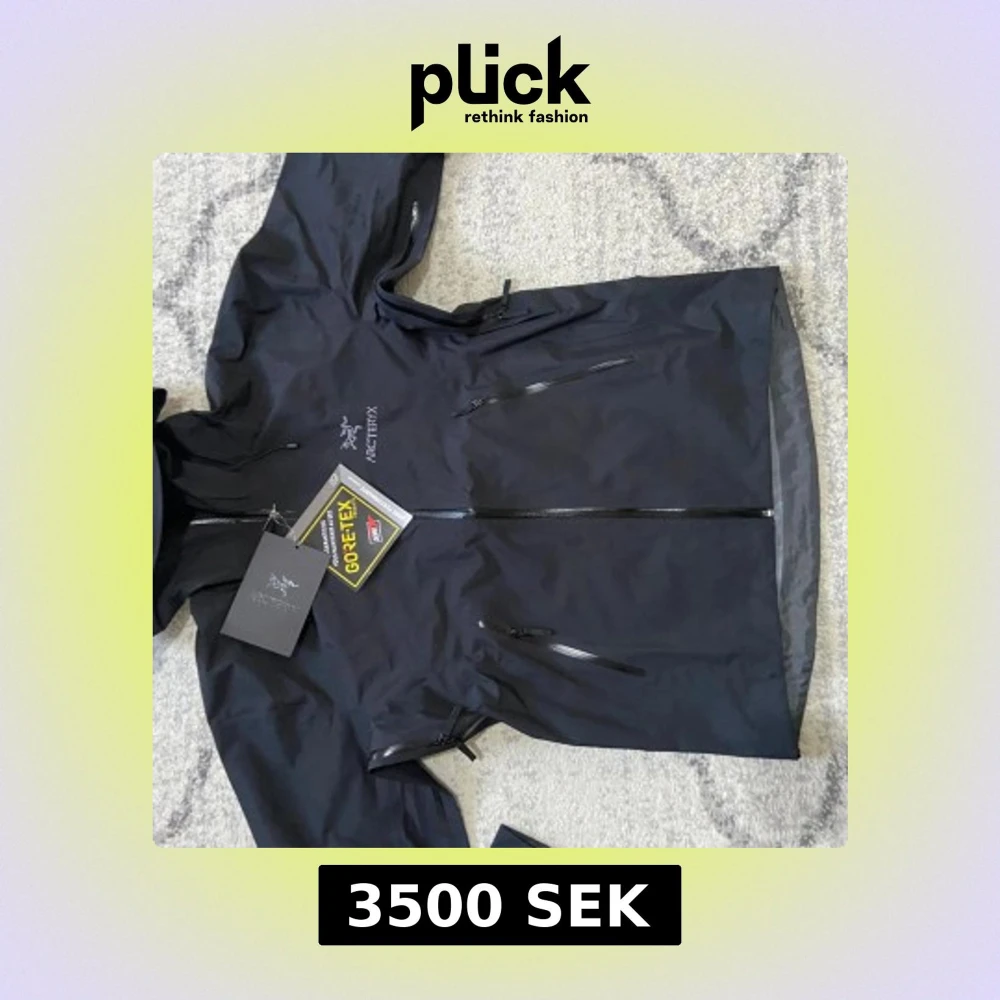 Arc'teryx svart vindjacka i Gore-Tex med minimalistisk design, vattentäta dragkedjor och flera fickor. Jackan har huva och justerbara detaljer för perfekt passform. Oanvänd då fel modell köptes.