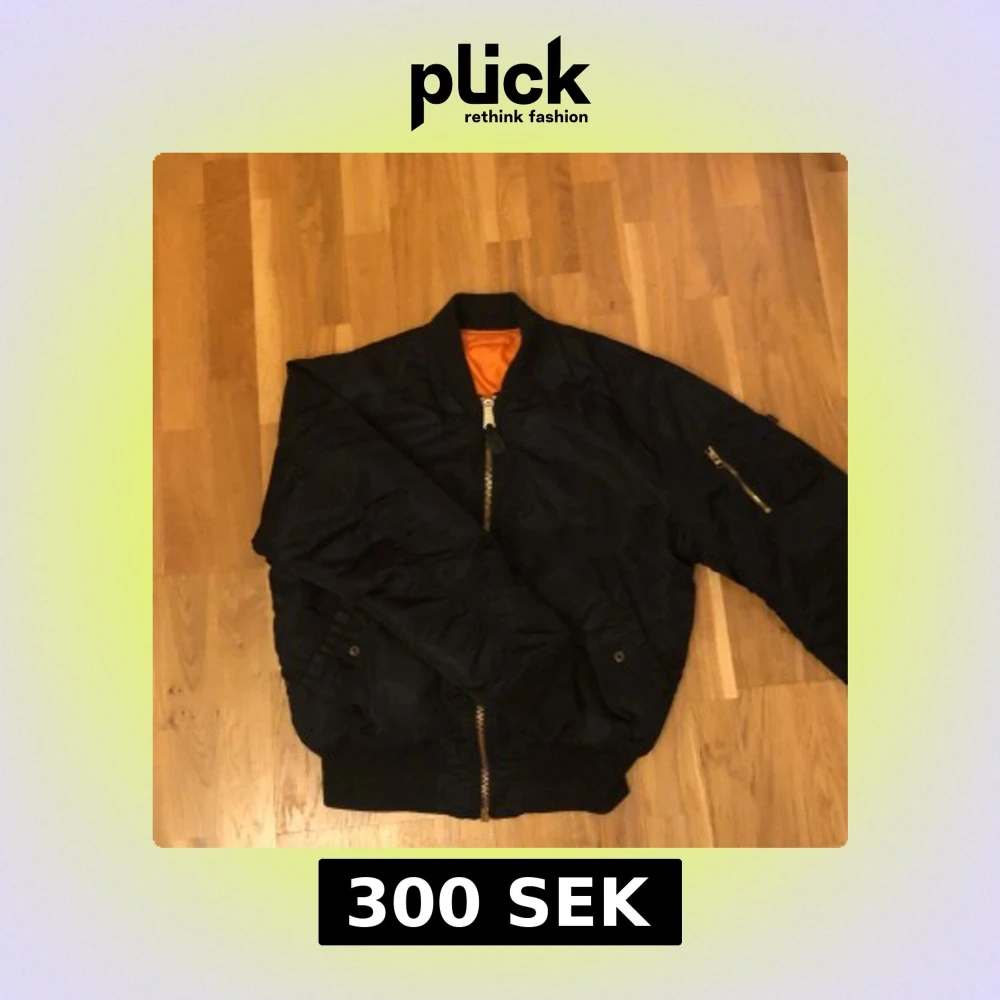 Säljer en svart bomberjacka från Alpha Industries med klassisk orange insida. Jackan har dragkedja framtill, fickor med tryckknappar och en ärmficka med dragkedja. Ställ gärna frågor om intresserad!