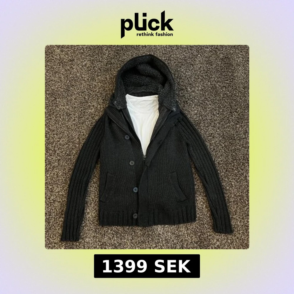 Riktigt fet stickad cardigan / jacka som är perfekt till våren! Cardiganen har ett innerlager vilket gör den till mer utav en jacka. Luvan är även fodrar. Cardiganen är i ett riktigt bra skick med inga defekter! Om du har några frågor eller funderingar är det bara att höra av!