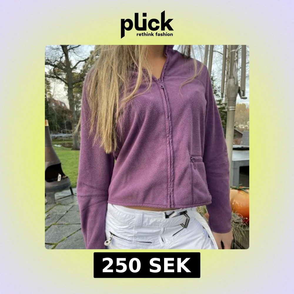 Säljer en mysig lila fleecejacka. Jackan har en dragkedja framtill och en praktisk ficka med dragkedja på sidan. Perfekt för afterski när du vill hålla dig varm och bekväm.