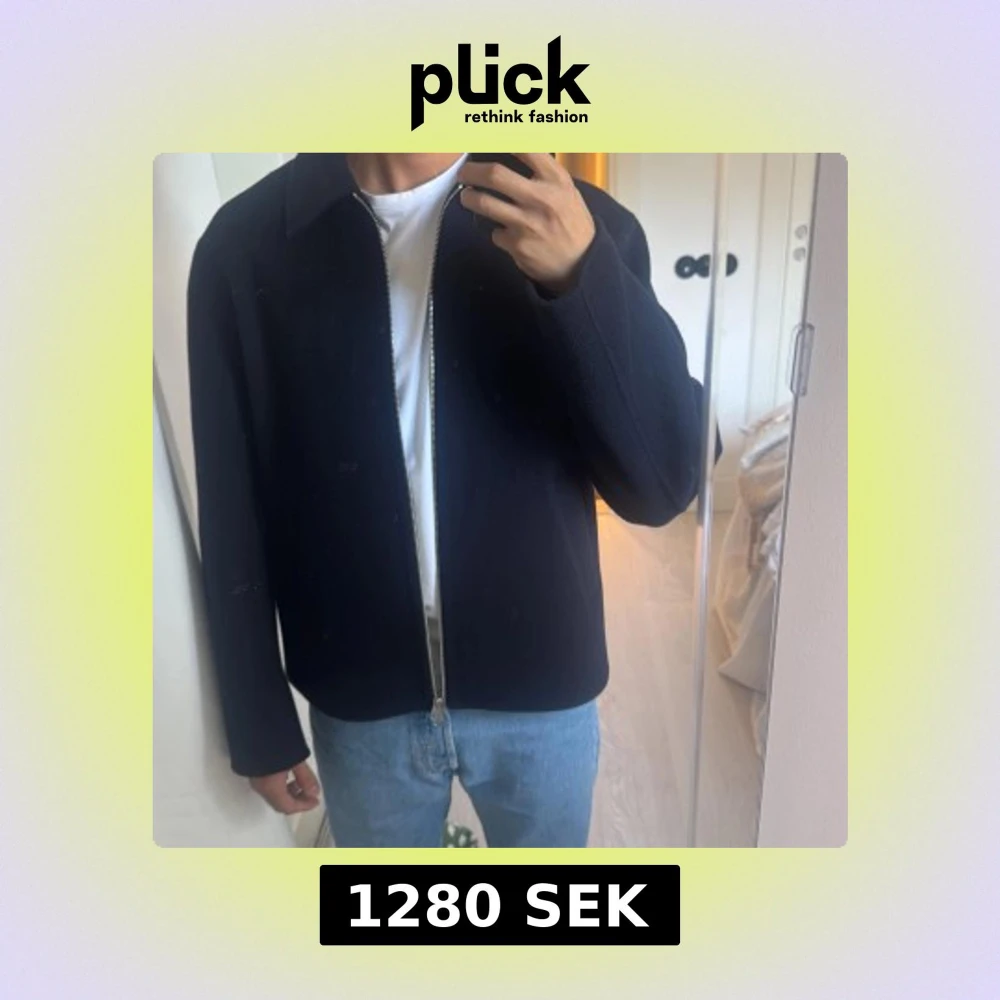 Mörkblå ulljacka med dragkedja, strl S Arket