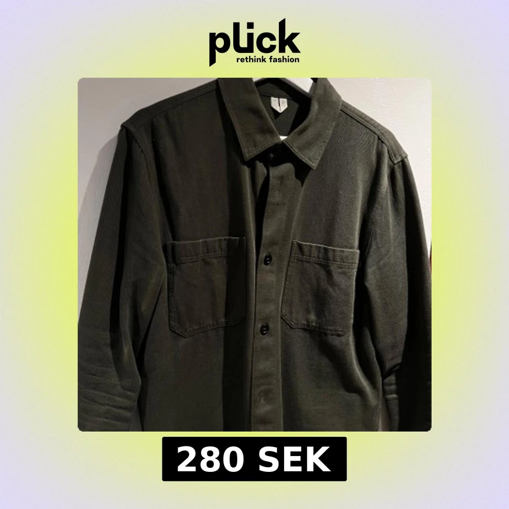 Snygg grön overshirt med två stora bröstfickor och knäppning framtill. Perfekt för lager-på-lager-stil. Den har en klassisk krage och är tillverkad i ett robust material som ger en cool look. Som storlek S/M.