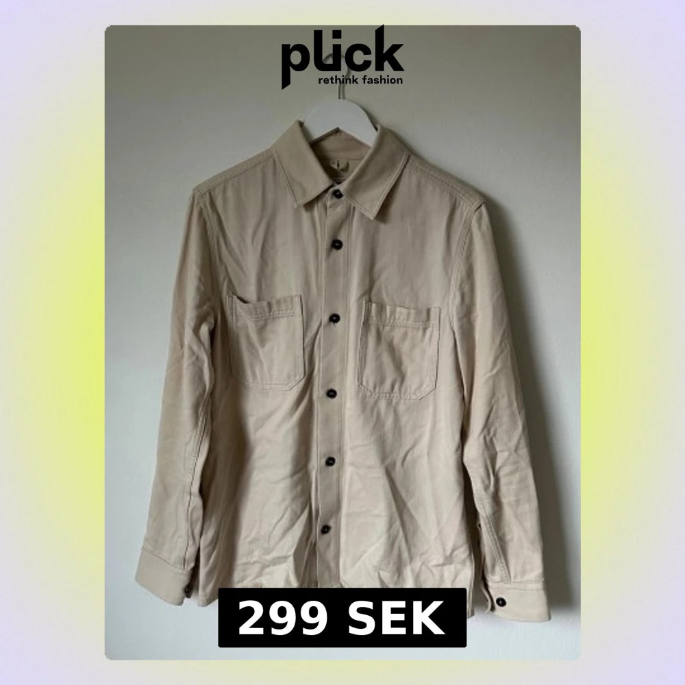 Säljer en beige overshirt från Arket i ekologisk bomullstwill. Regular fit med två stora bröstfickor, svarta knappar och klassisk krage. Perfekt att slänga över en t-shirt för en chill look. 5M6