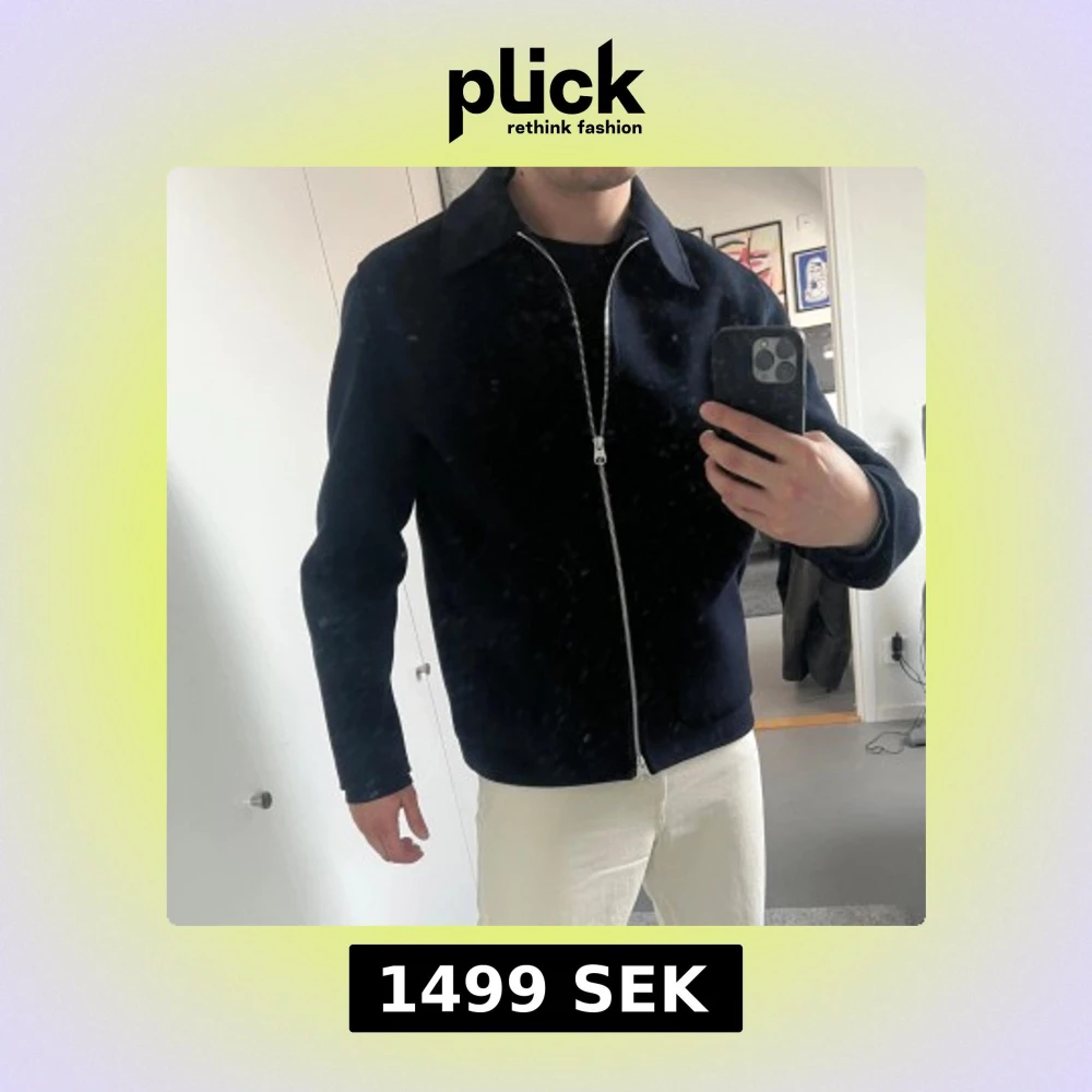 Säljer en stilren marinblå jacka från ARKET med silverfärgad dragkedja framtill och klassisk krage. Jackan har en rak passform och är perfekt för dig som gillar minimalistisk stil. Knappt använd, utmärkt skick - köpt för 2590 kr. Storlek 50/Medium.