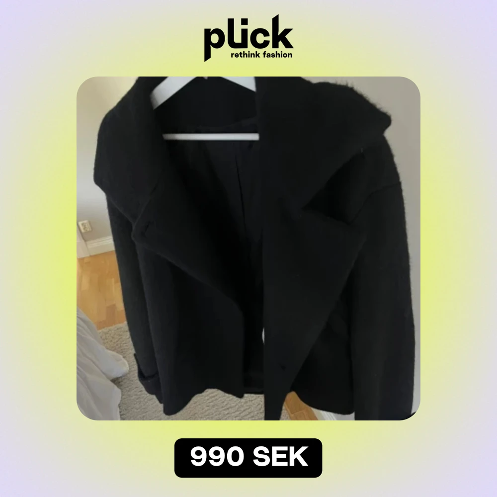 Svart kappa från arket, ”jacka i luddig ullblandning”. Strl: S, använd 3 ggr Nypris: 1890kr Mitt pris: 990kr