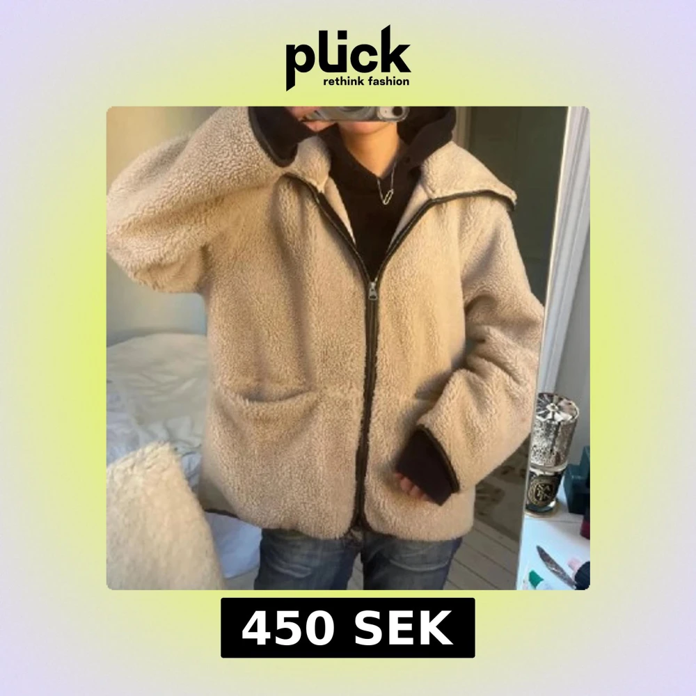 Mysig beige teddyjacka med dragkedja framtill och stora fickor. Jackan har lång ärm och en avslappnad passform, perfekt för kyliga dagar. Enkel och stilren design som passar till många outfits.