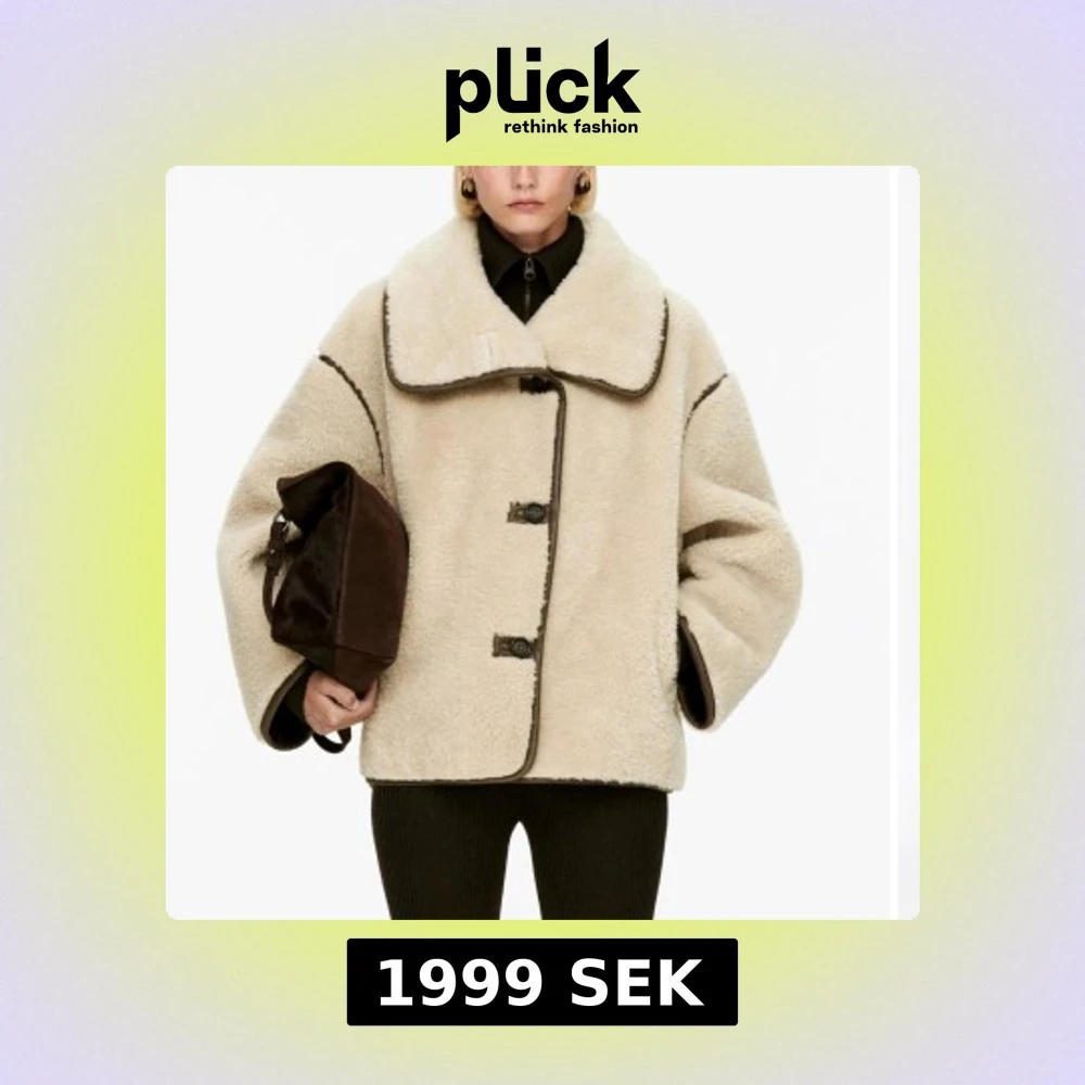 Supermjuk och oversized teddyjacka i beige med markerade mörkbruna sömmar och stora knappar framtill. Jackan har bred krage och långa ärmar, perfekt för kalla dagar. Använd 1 gång. Sto xs. Men passar S o M beroende på hur man vill att den sitter