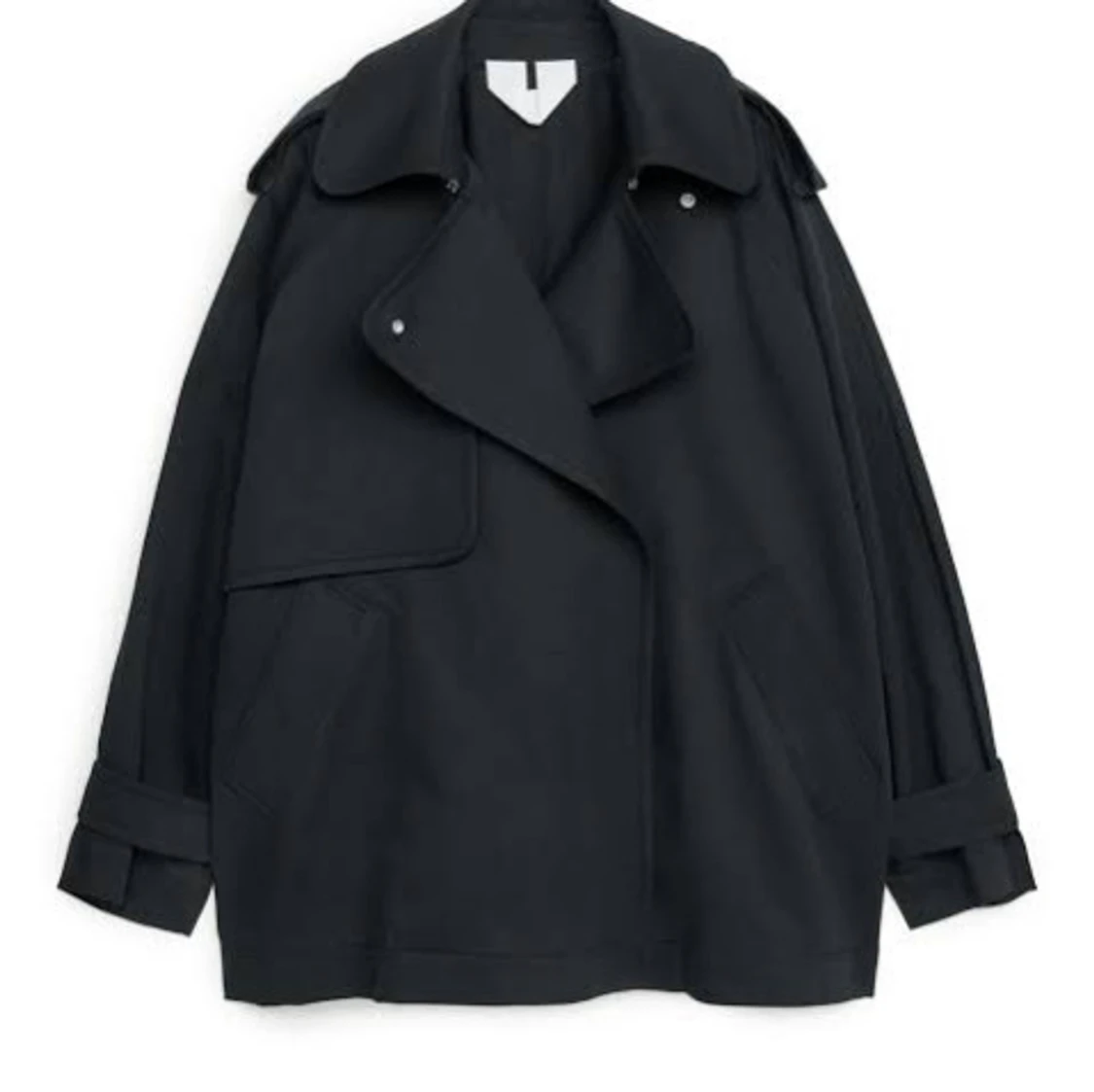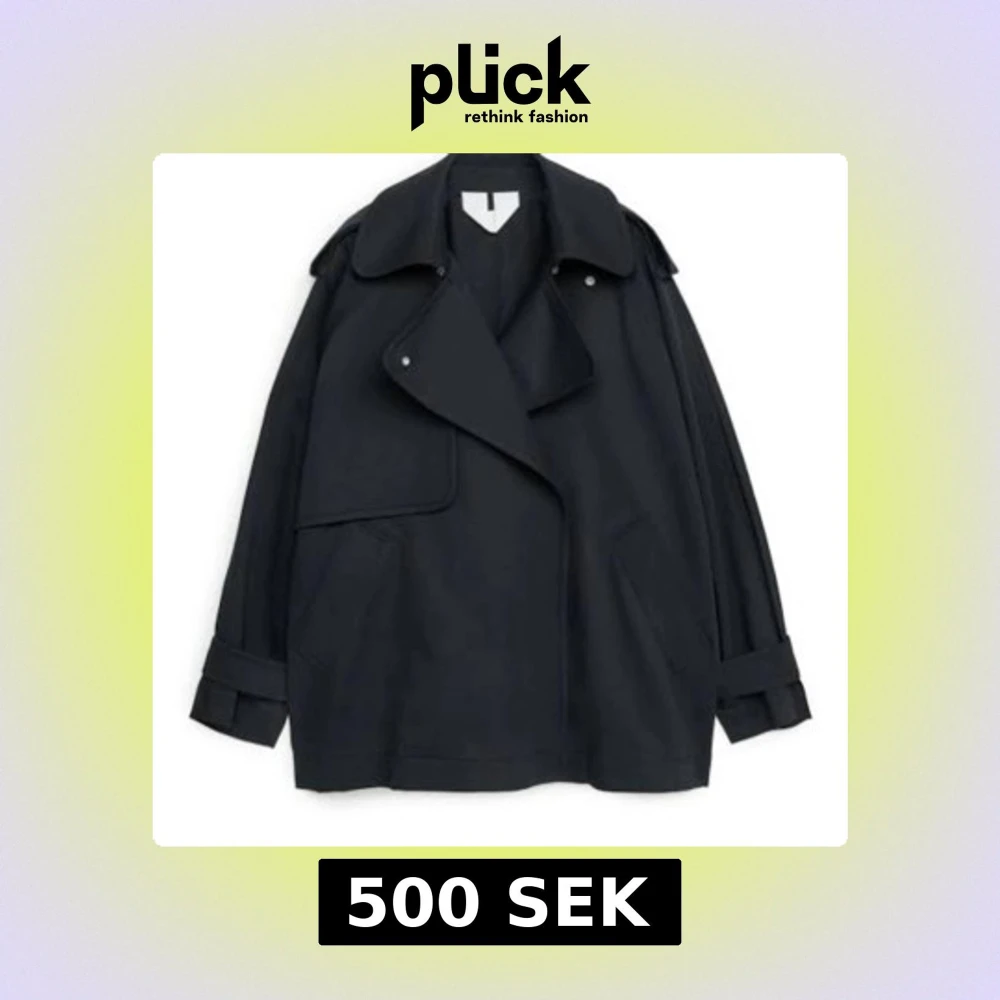 Svart trenchcoat från arket. Endast använd ett fåtal gånger. Nypris 1290kr. Storlek XS men passar mig som vanligtvis vill ha M i jackor då den är oversized