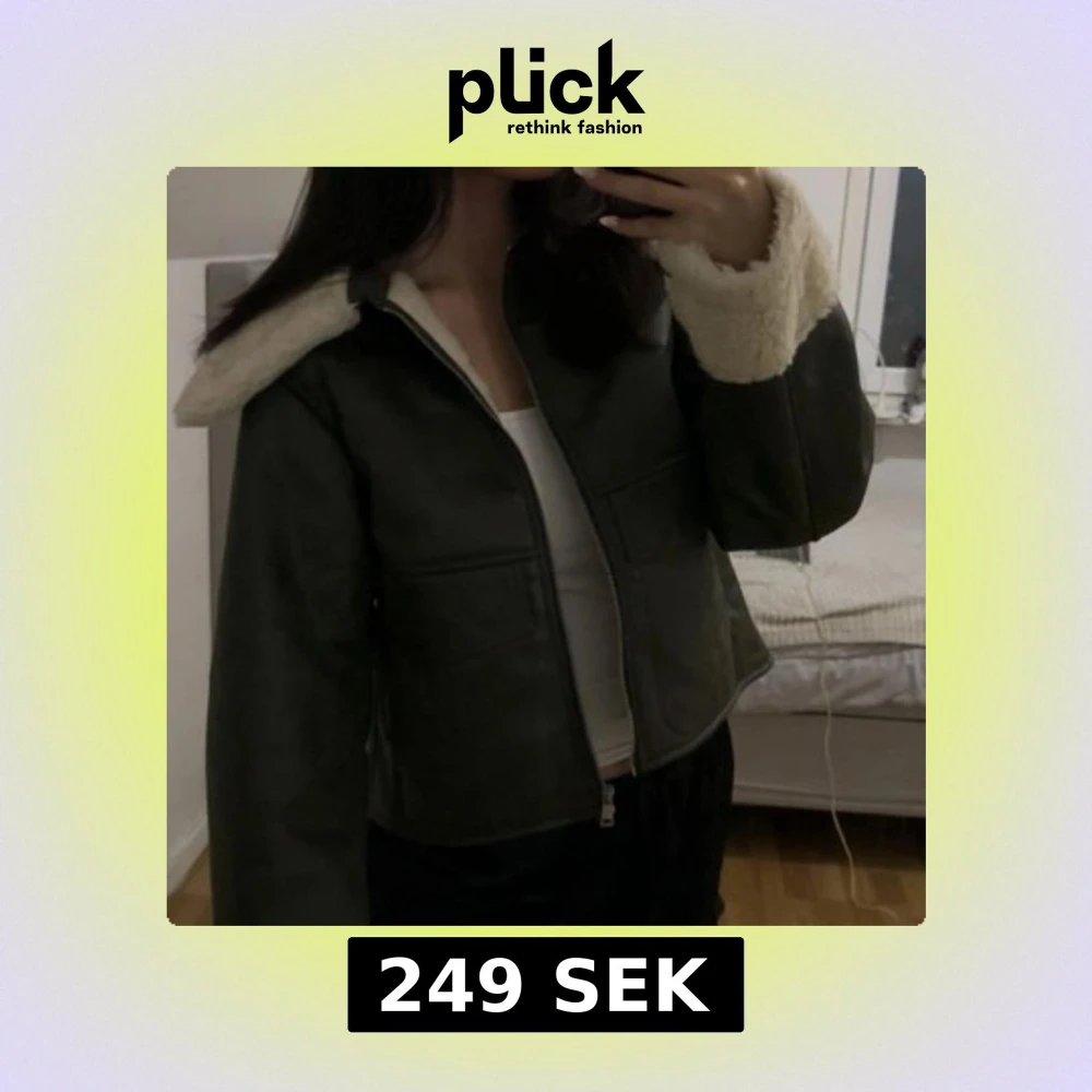 Snygg grön jacka med vit fuskpäls på kragen och ärmsluten. Jackan har en dragkedja framtill och är croppad i modellen. Perfekt för kyligare dagar när du vill vara både varm och stilren.