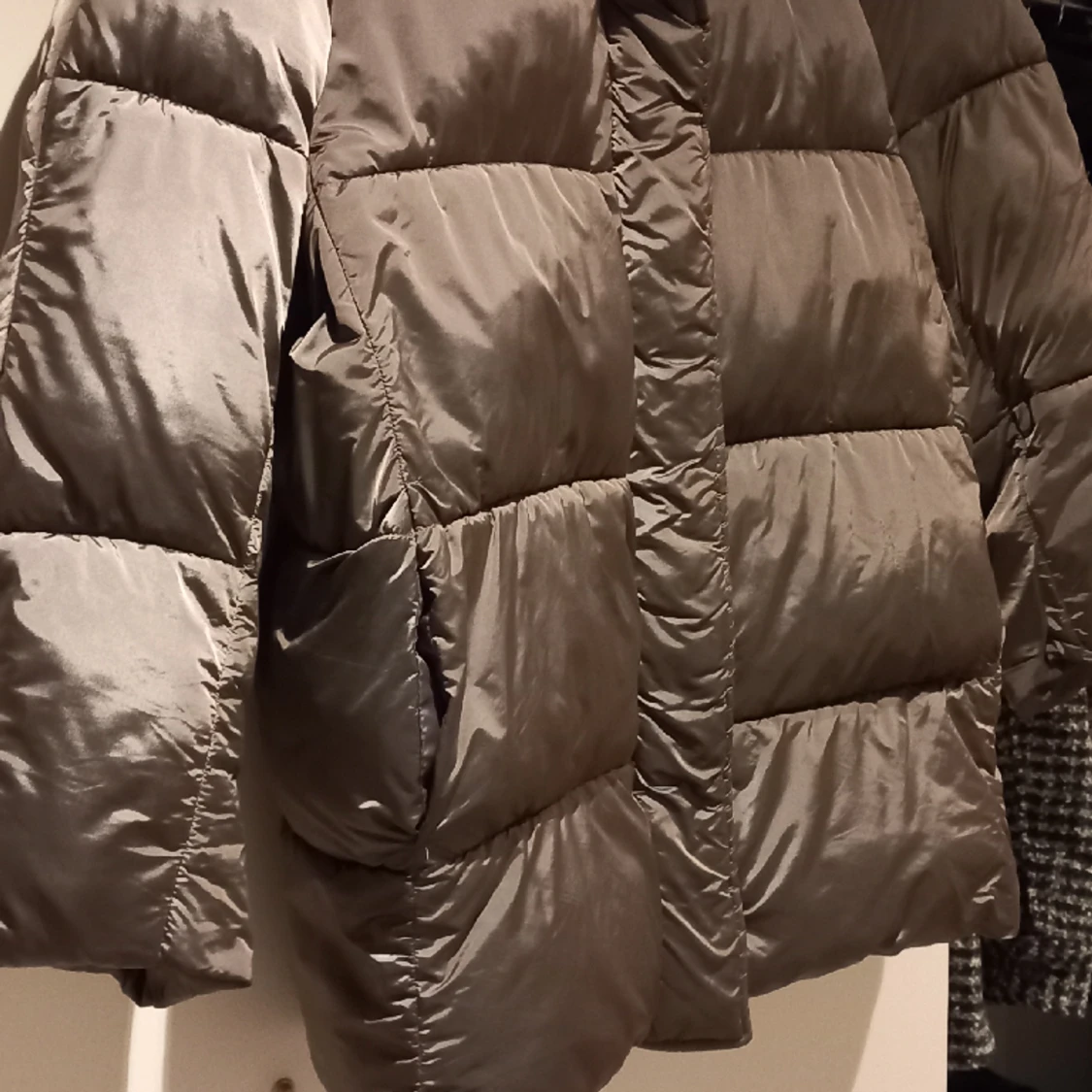 Nästan ny mycket få gånger använd. Jag gillar det för den glasiga kaffebruna färgen, men efter en oförsiktig tvätt flyttade fyllningen från ställen. originalpriset var 600 kr säljes för 200 kr 34 EU men för mig som 38 (M/L) var stor den jacka är stor