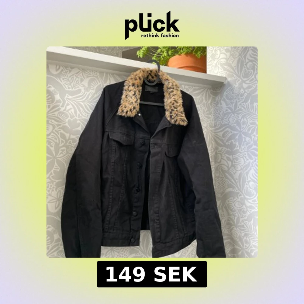 Svart jeansjacka med fluffig leopardmönstrad fuskpäls på kragen. Jackan har klassiska bröstfickor med lock och knappar framtill. Perfekt statement-plagg för dig som vill sticka ut med coola detaljer och djurprint.