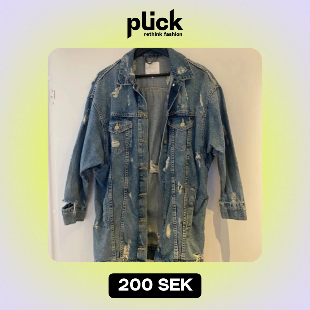 Jeansjacka i en sliten modell från Zara. Oversized och passar mig som har M i vanliga fall. Snyggt med en hoodie under eller liknande 😄