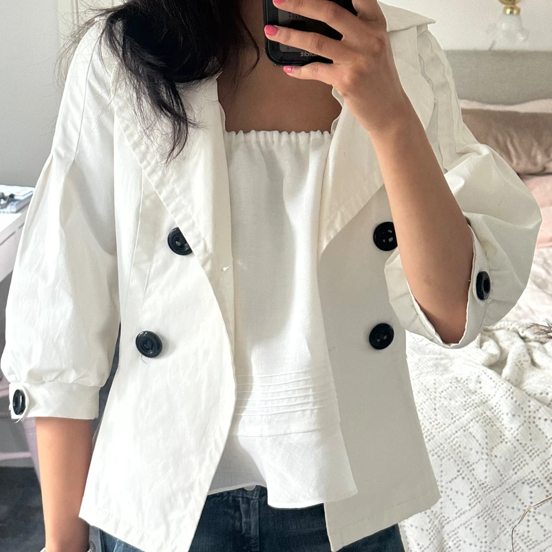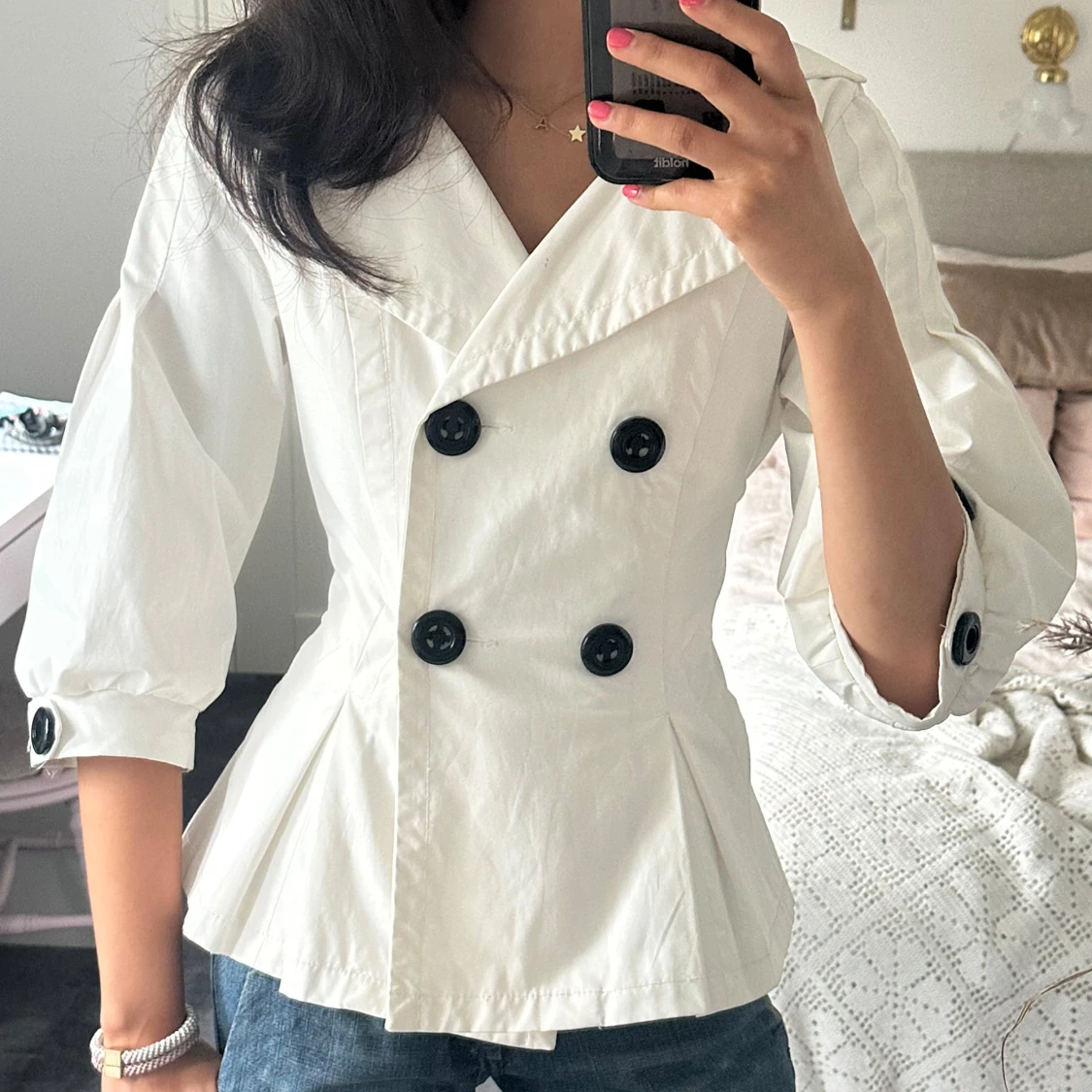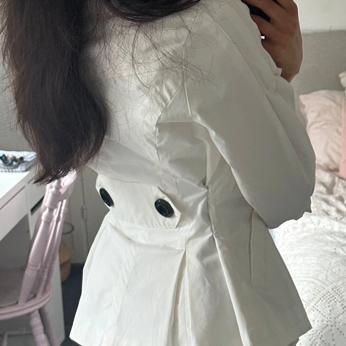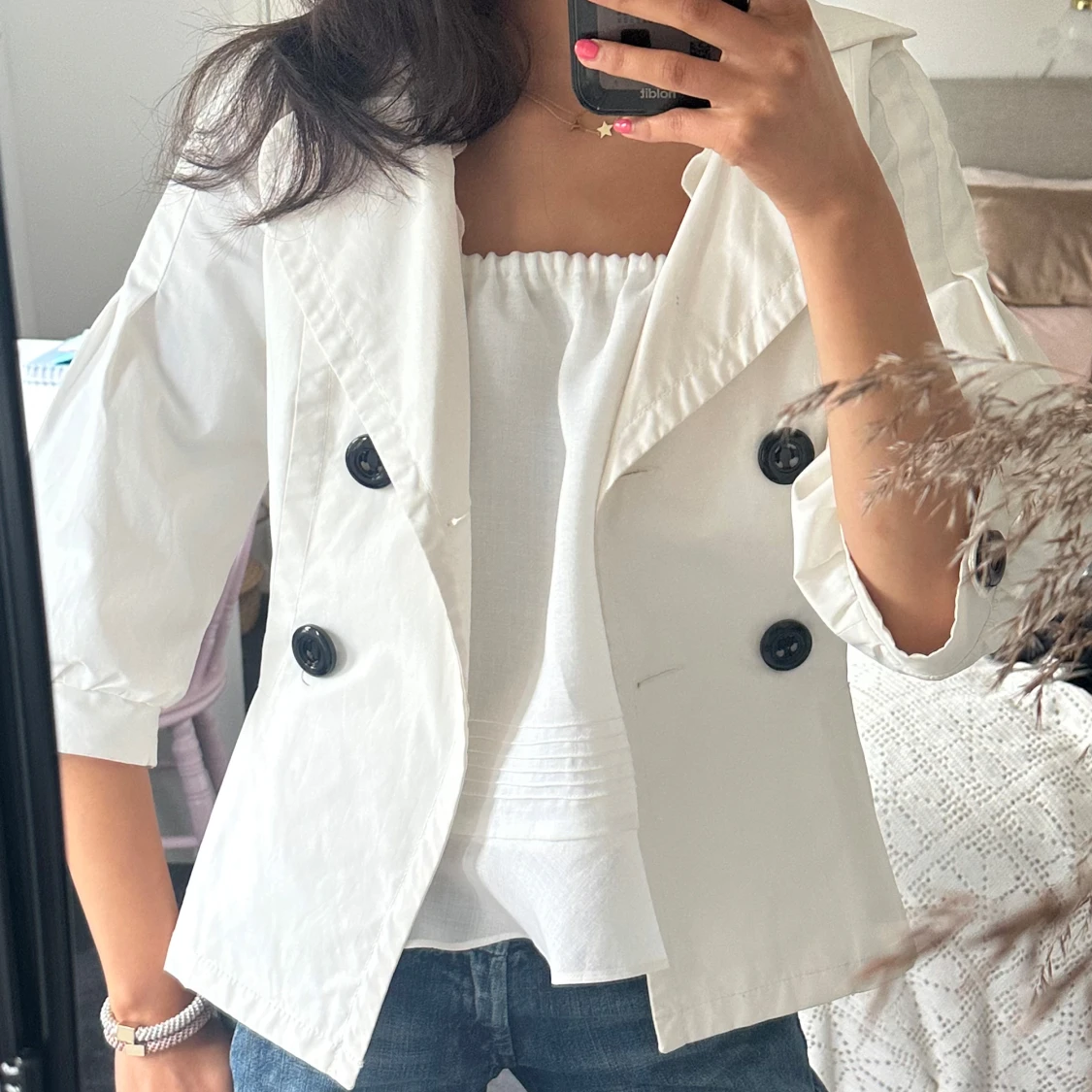 Hej!! Jag säljer denna jättesöta kappan med trekvartsärm som är köpt utomlands. Storleken är M men jag som brukar ha xs har målat in den från insidan med en säkerhetsnål som enkelt går att ta bort om man skulle vilja (har den i på alla bilder). Tveka inte på att skriva vid frågor och pris kan diskuteras!🤗