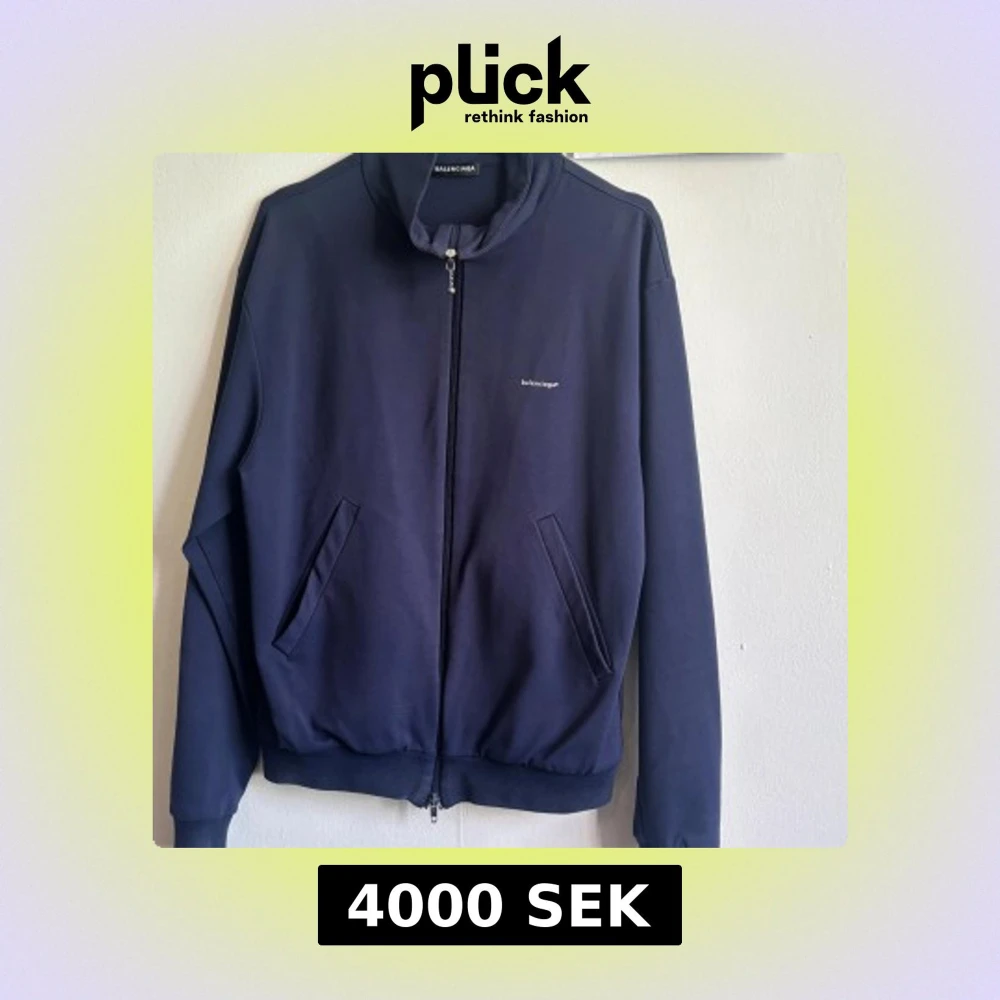 Säljer en stilren mörkblå bomberjacka från Balenciaga med diskret logga på bröstet. Jackan har dragkedja framtill, två snedställda fickor och ribbade muddar vid ärmslut och nederkant. Perfekt för dig som gillar minimalistisk design och exklusiva märken.