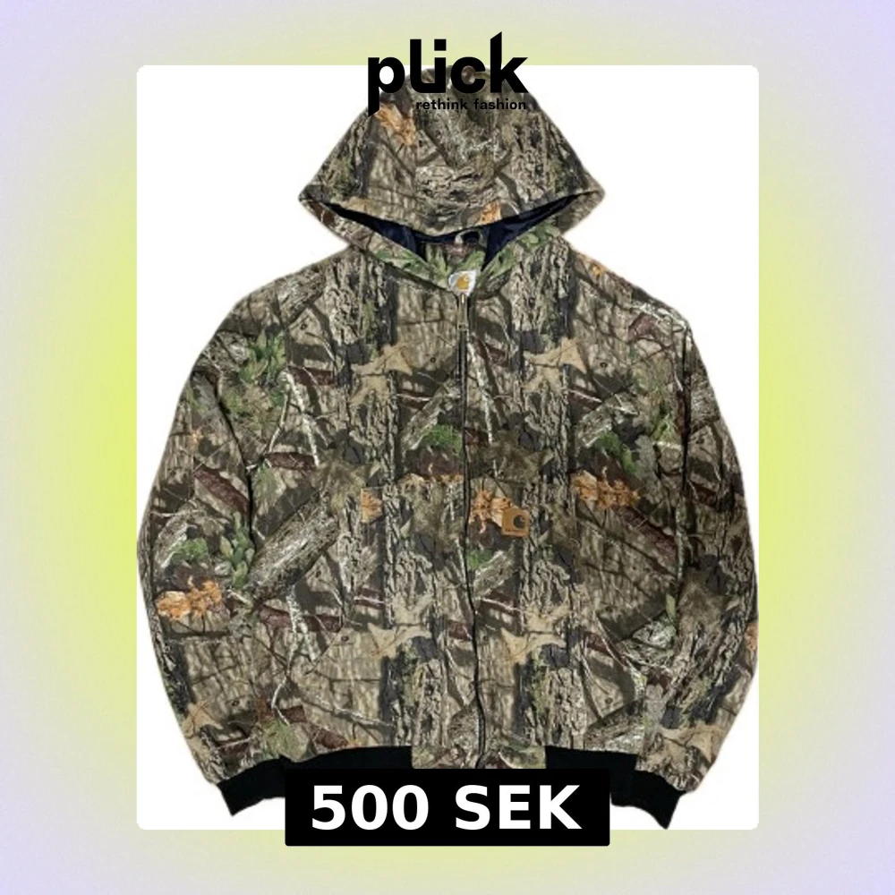 Vintage Camo Carhartt bomber-ish jacka som håller värmen bra under vintern. Har två innerfickor utöver de två fickorna där fram. Sitter lite ”croppat”.