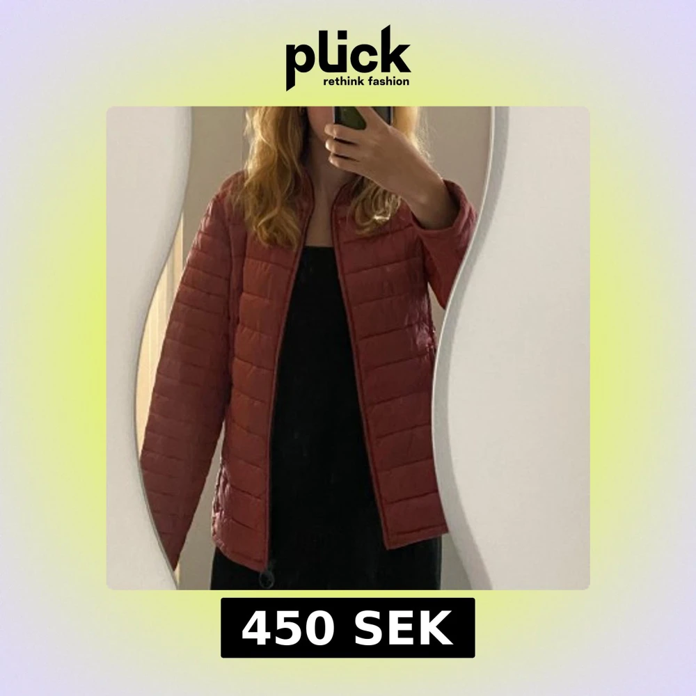Säljer en snygg rostfärgad pufferjacka från Barbour. Jackan har horisontella sömmar, hög krage och dragkedja framtill. Två fickor med dragkedja på sidorna. Den är inte jättetjock i materialet utan är mer en höst/vår-jacka än vinter. På insidan av jackan har den fått lite fläckar (man ser på bild 4). Den är i storlek 38, men sitter ganska figurnära och har dessutom lite kortare ärmar ((TYCKER JAG))